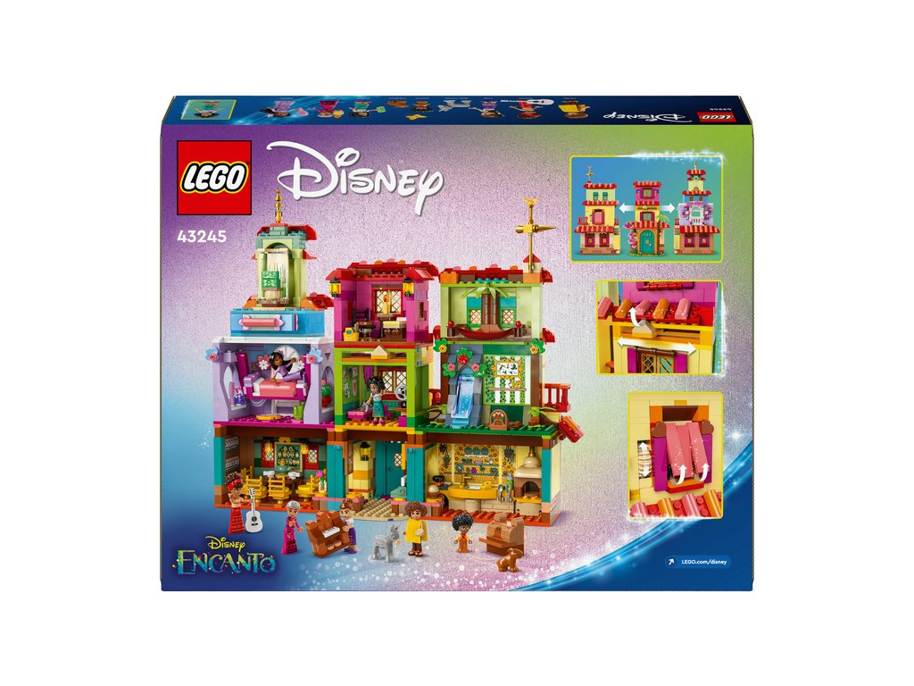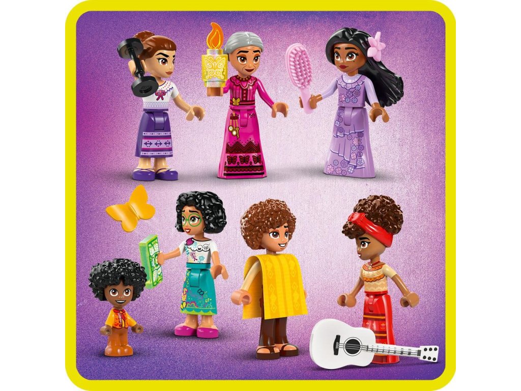 Tato stavebnice představuje zábavný dárek a součástí jsou minipanenky LEGO ǀ Disney Mirabel, Abuely, Isabely, Dolores, Luisy a Camila, mikropanenka LEGO ǀ Disney Antonia a 2 figurky zvířátek LEGO ǀ Disney. Děti i dospělí si zamilují propracované detaily stavebnice. Domeček lze zkombinovat s dalšími stavebnicemi LEGO pro děti a stavebnicemi z řady LEGO ǀ Disney (prodávají se samostatně) pro ještě více zábavy.
