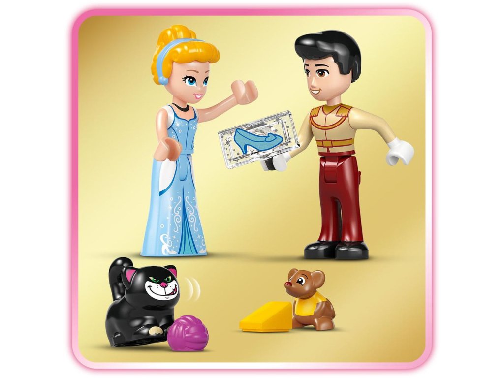 Inspirujte děti od 6 let k nekonečnému hraní na fantasy příběhy se stavebnicí LEGO® ǀ Disney (43275) Popelčin zámek a kočár s koňmi. Stavebnice obsahuje sestavitelný dvoupatrový zámek s tanečním sálem s otáčející se podlahou, šicí dílnu a 3 místnosti v patře. K hradu je připojena stáj se senem a sedlem pro figurku LEGO ǀ Disney koně. Součástí je také kočár s postrojem a prostor pro minipanenky LEGO ǀ Disney Popelky a krásného prince a figurky zvířat LEGO ǀ Disney Lucifera a Guse a řada herních doplňků.