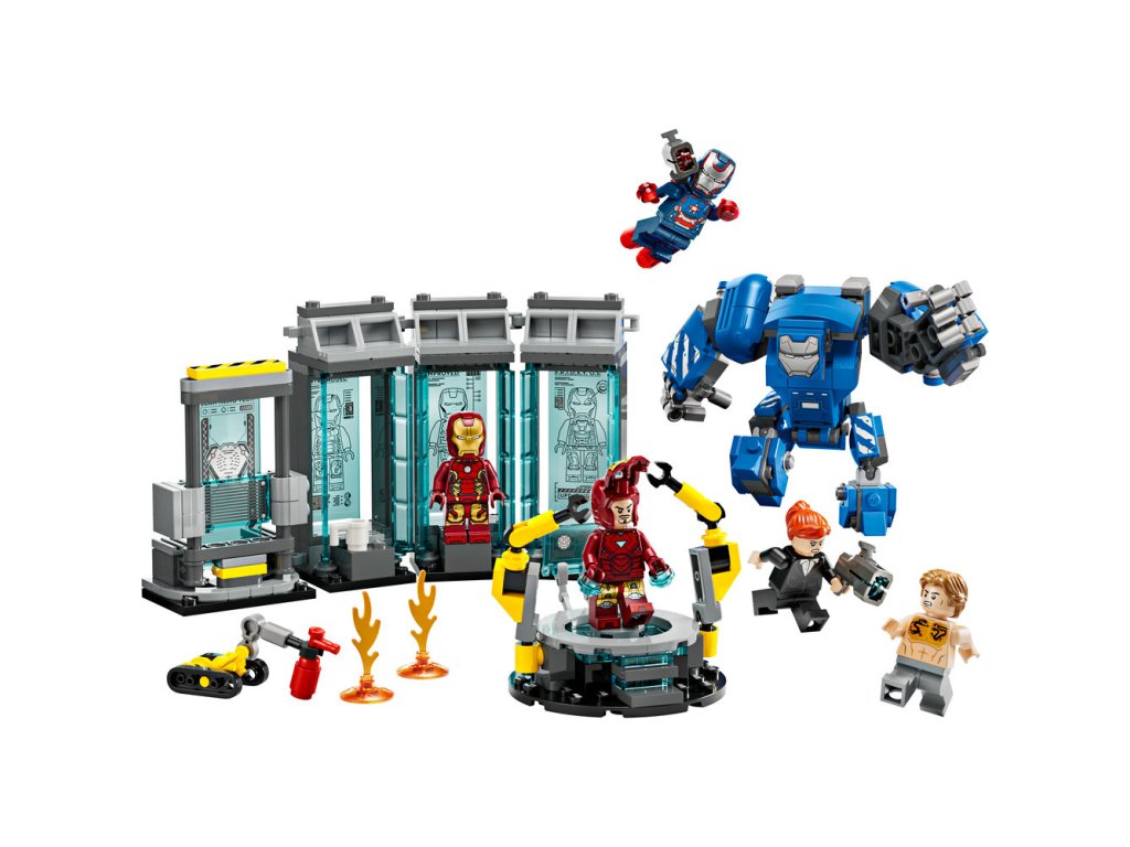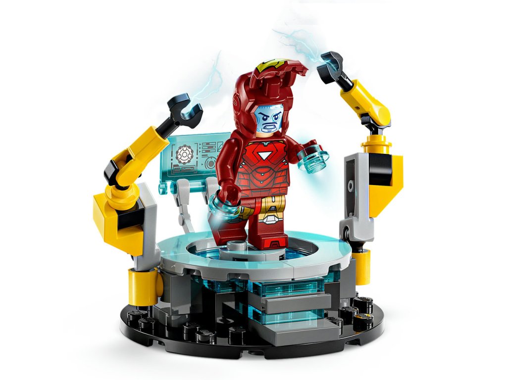 Tato stavebnice LEGO ǀ Marvel obsahuje 3 sady brnění a 3 minifigurky brnění Iron Mana: MK1, MK43 a MK6. Stavebnici doplňují minifigurky Pepper Pottsové a padoucha Aldricha Killiana, sestavitelný robot Dum-E a velké robotické brnění Igor Iron Man MK3 s pohyblivými pažemi a nohama a kokpitem s místem pro minifigurku. Mezi další funkce stavebnice patří plošina na údržbu se 2 robotickými rameny a velkým skenovacím zařízením. Nechybí hasicí přístroj a 2 ohnivé dílky a 2 vystřelovače na akční souboje. Pro ještě větší digitální zábavu si stavitelé můžou přibližovat a otáčet modely ve 3D a sledovat svůj pokrok pomocí zábavné a intuitivní aplikace LEGO Builder. Model obsahuje 384 dílků.