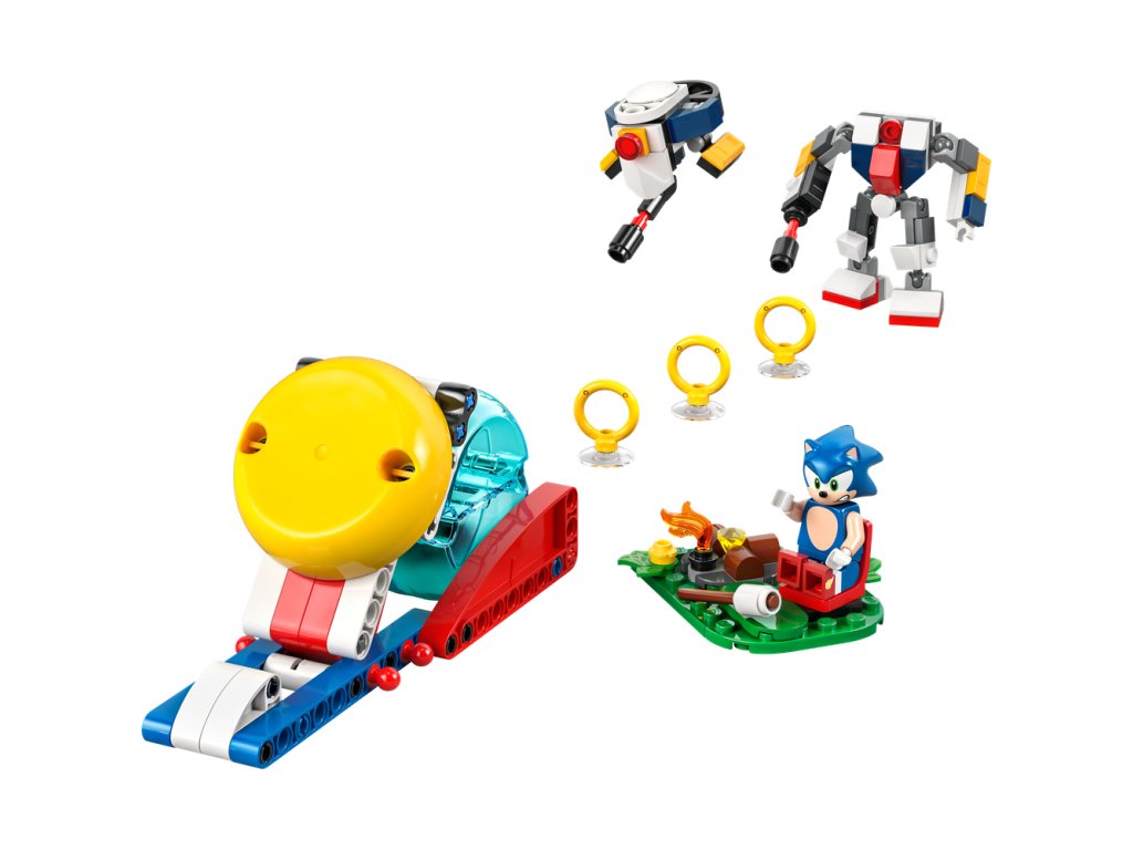 Tato interaktivní, funkcemi nabitá stavebnice Sonic pro kluky a holky děti a fanoušky inspiruje k vyprávění nových příběhů se Sonicem a nepřátelskými roboty. Vychutnají si okamžiky odpočinku u táboráku, postaví se robotům při záchraně Tockyho a získají 3 zlaté prsteny.