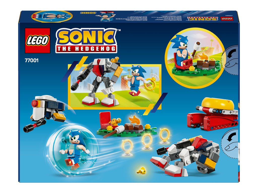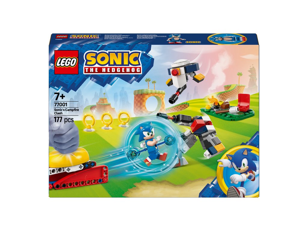 Milovníci videoher od 7 let se se sběratelskou stavebnicí LEGO® Sonic the Hedgehog™ (77001) Sonic a souboj u táboráku můžou těšit na zábavná dobrodružství. Tato stavebnice LEGO® s postavou Sonic the Hedgehog™ obsahuje model táboráku, vystřelovač koulí rychlosti, kouli rychlosti a doplňky včetně Chaos Emerald a 3 zlatých prstenů. Tato videoherní stavebnice obsahuje také 4 postavy ze světa Sonica: Minifigurku Sonica, „létající“ robotický dron G.U.N. Beetle, pohyblivou figurku robota G.U.N. Huntera a Tockyho.