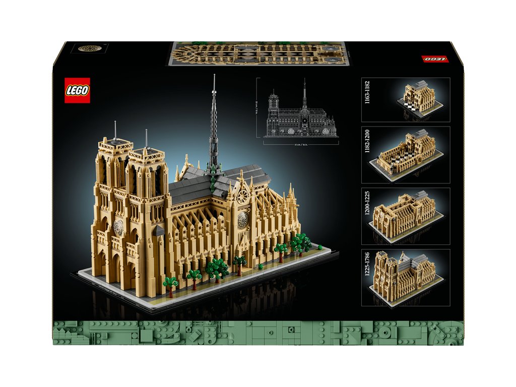 Prozkoumejte každou etapu vývoje této ikonické pařížské památky se sběratelskou stavebnicí LEGO® Architecture (21061) Notre-Dame v Paříži. Vypravte se s tímto architektonickým modelem na historickou cestu, která začíná v roce 1163, kdy byl položen základní kámen, přes práci architekta Viollet-le-Duca na přestavbě v 19. století až po majestátní podobu katedrály Notre-Dame před požárem roku 2019.