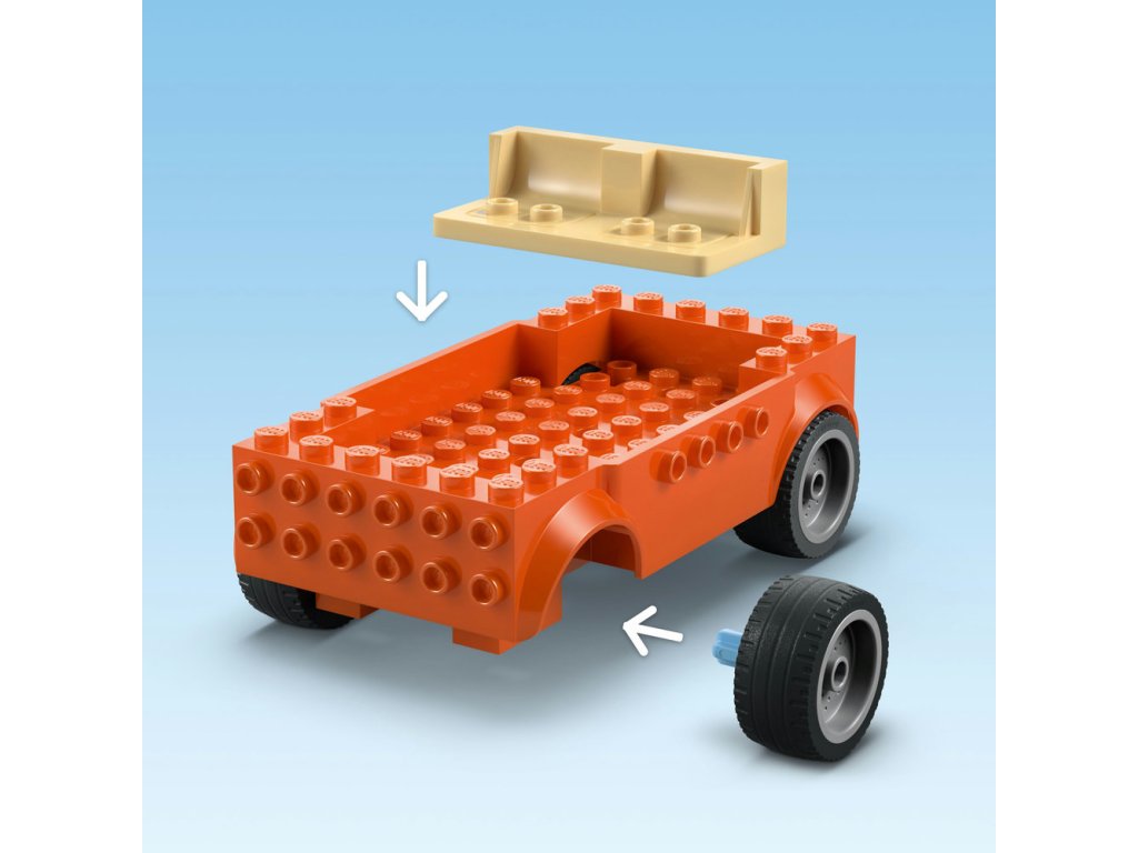 Bluey a rodinný výlet autem na pláž (11202) je stavebnice s Bluey, Bingo a maminkou, které si do auta balí všechno potřebné na zábavný den na pláži. Tato interaktivní hračka pro fanoušky televizního seriálu Bluey je ideální pro děti od 4 let. Nabízí nekonečné možnosti nápaditého hraní a rozvíjí jejich představivost a schopnost řešit problémy. Tato stavebnice LEGO® obsahuje milované vozidlo z televizního seriálu Bluey se 2 surfovacími prkny připevněnými na střeše a kufrem na uložení chladicího boxu. Vyklápěcí střecha auta umožňuje dětem snadný přístup do interiéru, kde jsou sedadla pro minifigurky Bluey, Bingo a Chilli (maminky Bluey). Mezi plážové prvky, které inspirují děti ke kreativnímu hraní, patří působivý hrad z písku, ocas mořské panny z písku, do kterého se vejde minifigurka, lehátko, slunečník a palma. Nechybí krab, zmrzlina, sluneční brýle a opalovací krém. Díky velké začátečnické kostce a barevné brožurce s návodem na stavění se děti od 4 let můžou hned pustit do hraní.Dodatočné parametre