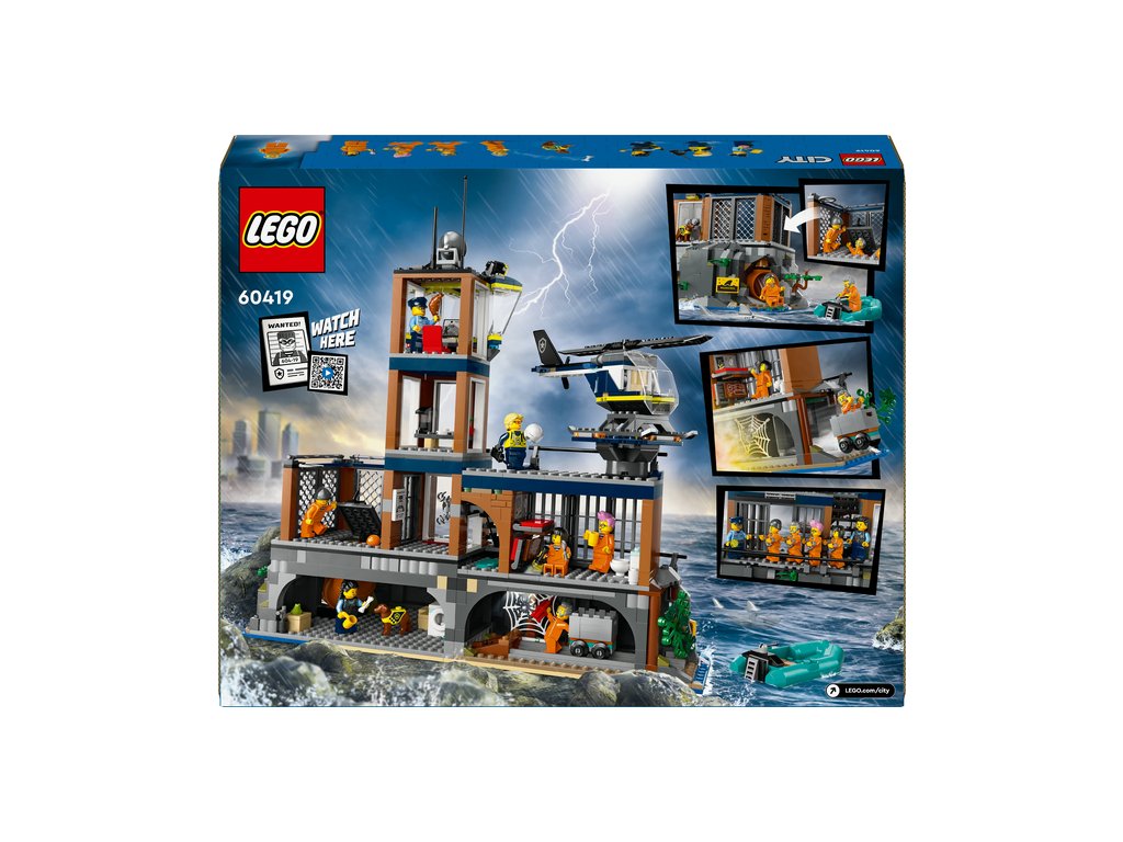 Stavebnice 60419 LEGO® City Policie a vězení na ostrově je domovem nejznámějších zločinců ve městě, kteří ale mají jiné plány! S touto úžasnou herní stavebnicí, která obsahuje vězení na útesu plné funkcí a nejrůznějších prvků, vás čekají dobrodružství plná akce. Obsahuje také vrtulník, policejní člun, člun, 3 minifigurky policistů a 4 minifigurky vězňů, a navíc figurky policejního psa a žraloka.