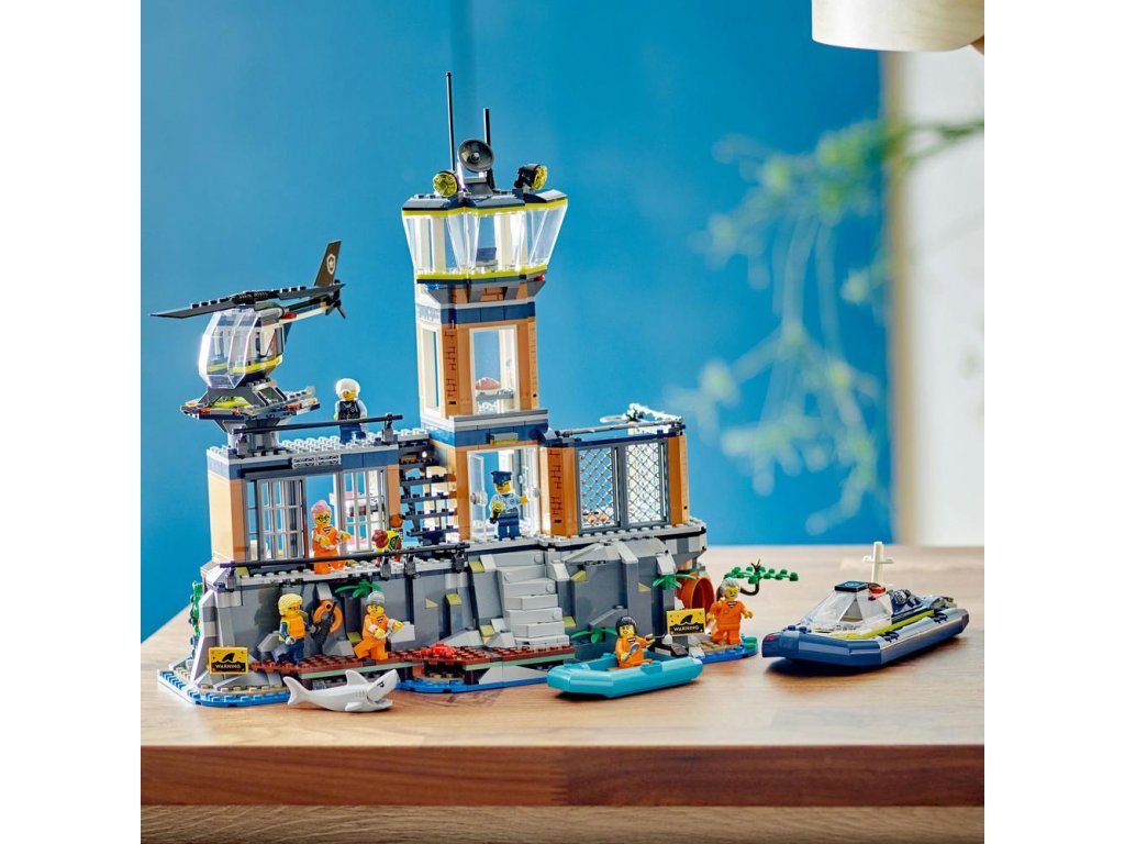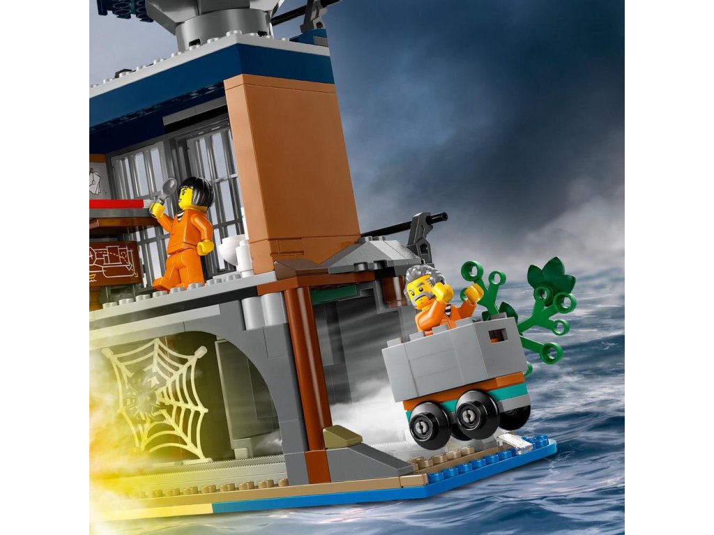 Stavebnice s ostrovem vězňů je plná interiérových detailů pro nápadité hraní, včetně řídicí místnosti, odpočívárny pro policisty, vstupní haly, dvora s tajným únikovým poklopem, psí boudy, cely s postelemi a únikového tunelu, který vede do opuštěného dolu, a dále nechybí prádelny pro vězně s nástroji pro útěk z vězení. Mezi další detaily patří přistávací plocha pro vrtulník a skalní stěna s uvolněným kamenem pro výbušný úprk.