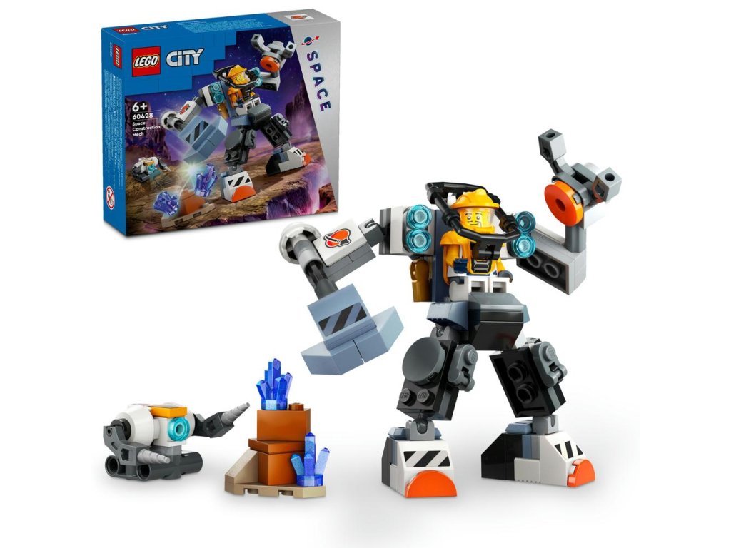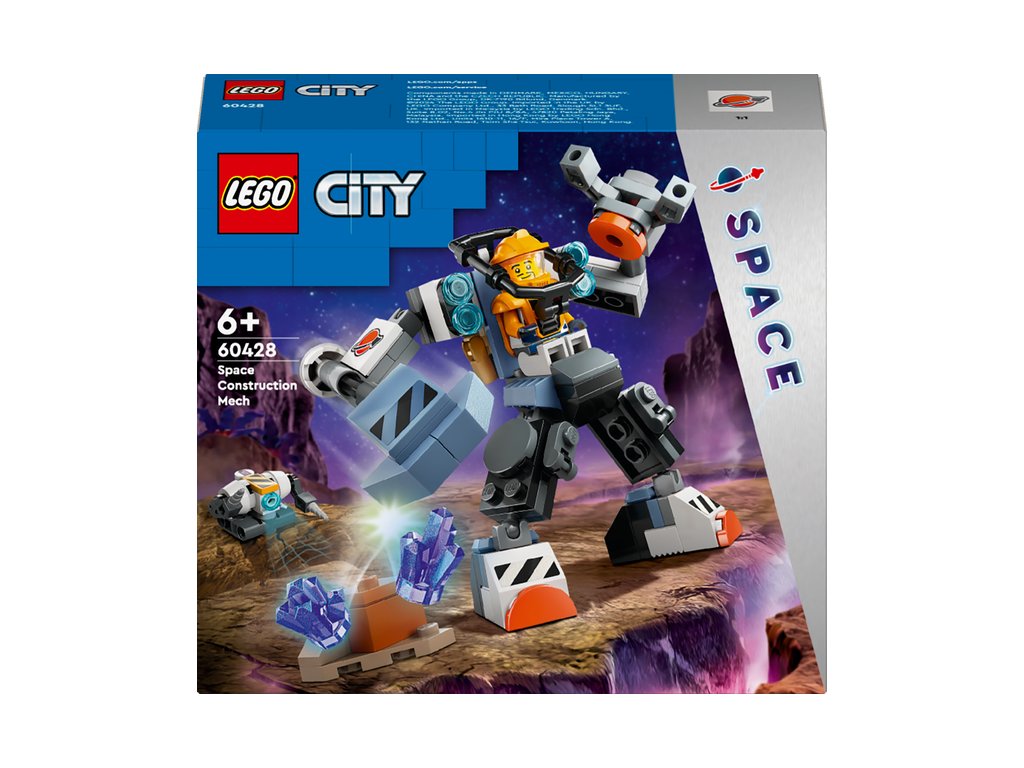 Vyšlete děti hrát si na orbit se stavebnicí 60428 LEGO® City Vesmírný konstrukční robot pro kluky a holky od 6 let. Futuristický herní robotický oblek s rameny s kladivem a drápem, kokpitem pro minifigurku pilota a velkými chodidly pro zkoumání vzdálených planet. Stačí přidat stavebního robota, prostředí planety, prvky energetických krystalů a minifigurky vesmírné posádky a čekají vás hodiny epické vesmírné akce.