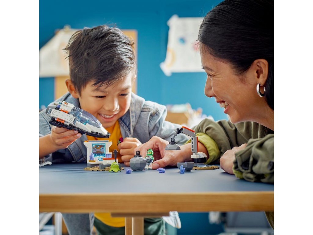 Přidejte se ke svým malým astronautům na dobrodružství z jiného světa díky této stavebnici 60429 LEGO® City Vesmírná loď a objev asteroidu. Součástí stavebnice je hračka vesmírné lodě, 2 scenérie povrchu asteroidu s laboratoří a oblastí vykopávek s jeřábem. Stačí přidat 2 minifigurky vesmírné posádky, figurku mimozemšťana a meteorit bohatý na krystaly a nápadité hraní a vyprávění příběhů může začít.