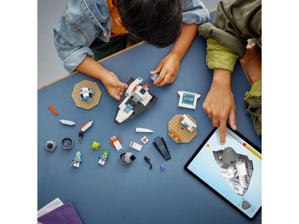 Tato snadno sestavitelná stavebnice s vesmírným motivem je skvělým dárkem pro děti, které milují hraní rolí. Obsahuje prvek začátečnické kostky LEGO, obrázkové pokyny a 3D návod v aplikaci LEGO Builder, která je digitálním průvodcem stavbou a má intuitivní nástroje přibližování a otáčení, aby si děti mohly během stavění prohlížet modely ze všech úhlů.