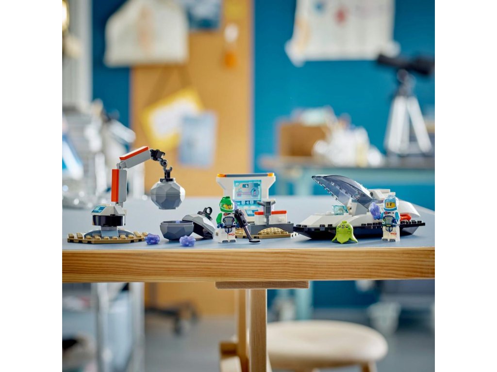 • Vesmírná loď, jeřáb, laborator, meteorit, 2 minifigurky a figurka mimozemšťana na hraní