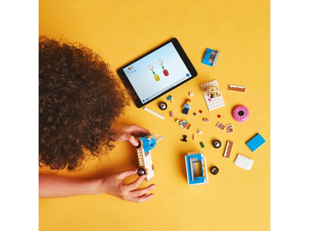 Návod na stavění mobilního obchodu s donuty LEGO najdete v krabici – nebo si stáhněte aplikaci LEGO Builder, která dětem umožní prozkoumávat a ukládat si virtuální stavebnice, sledovat postup stavění a přibližovat, otáčet a prohlížet si modely ze všech úhlů, zatímco na nich pracují.