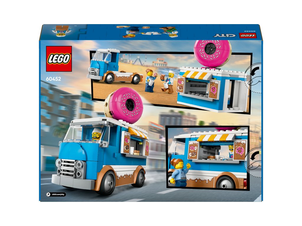 Představujeme dokonalou automobilovou stavebnici pro milovníky sladkých dobrot od 5 let. Stavebnice LEGO® City (60452) Truck s donuty obsahuje dekoraci lahodné polevy, obří koblihu na střeše a bezbariérovou kuchyňku s kávovarem a pokladnou. Děti naservírují chutné koblihy a nápoje z obslužného okénka a po odpojení kiosku si užijí ještě více možností hraní. Stačí přidat minifigurky prodavače a zákazníka a zábava může začít!