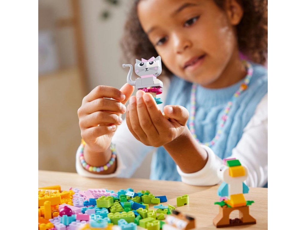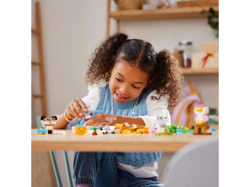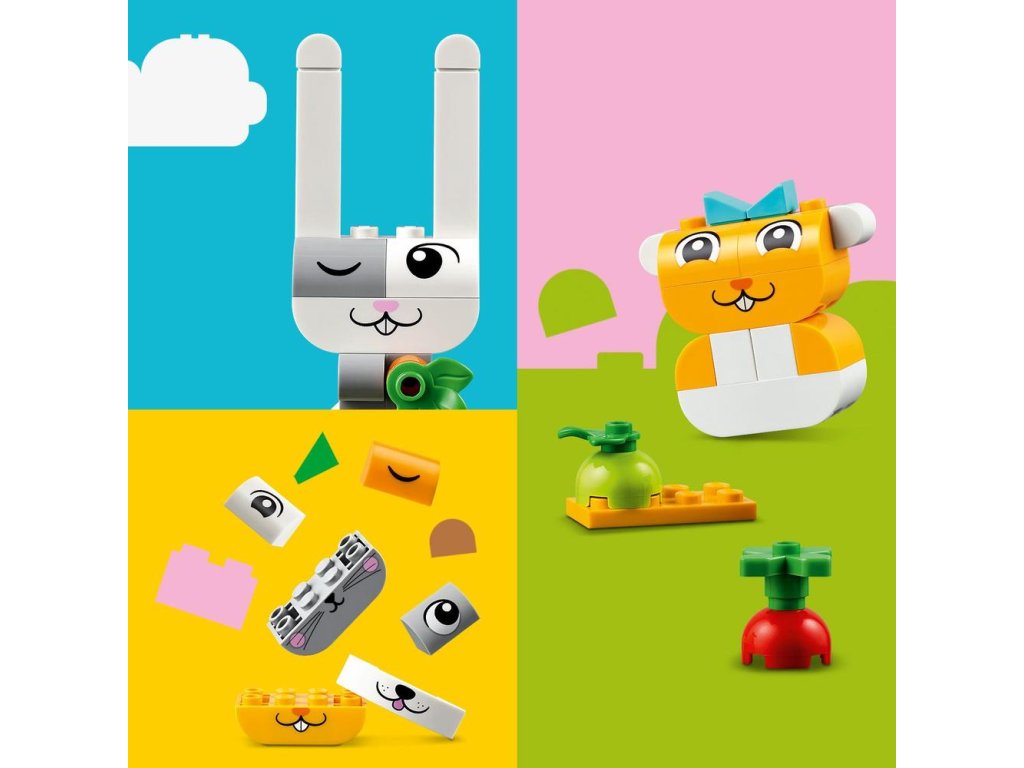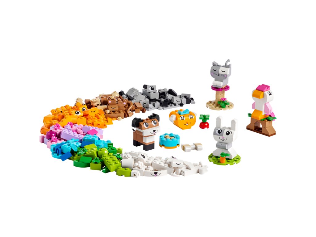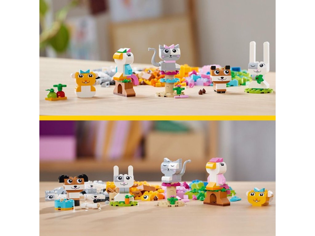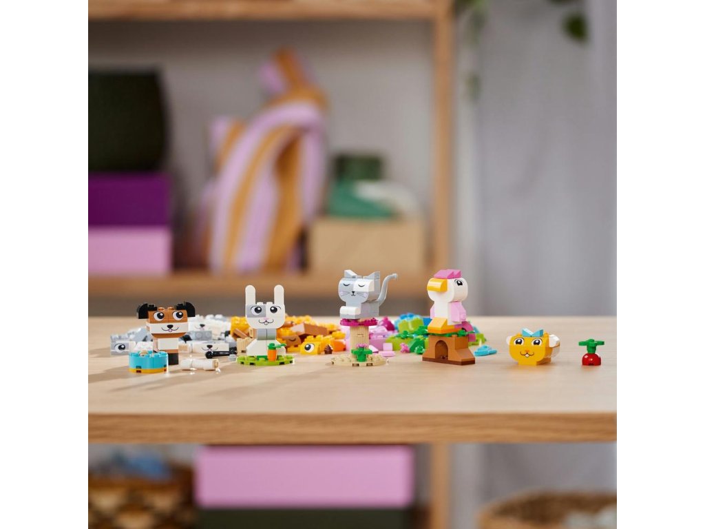 Součástí stavebnice je 450 kostek LEGO, včetně speciálních dílků s očima a ústy a podrobným návodem na stavění. Děti si postaví model psa s kostí, kočku na škrabadle, křečka s jablkem, králíka s mrkví a ptáka na bidýlku. Díky návrhům s alternativními barvami, tvary a funkcemi si děti vyzkouší přestavět mazlíčky do zcela nových podob. Sada pomáhá rozvíjet kreativní dovednosti malých stavitelů, kteří si zkusí poskládat vlastní nápady. Součástí je návod s 10 tipy na stavění, které podnítí kreativní tvoření podle vlastní fantazie.