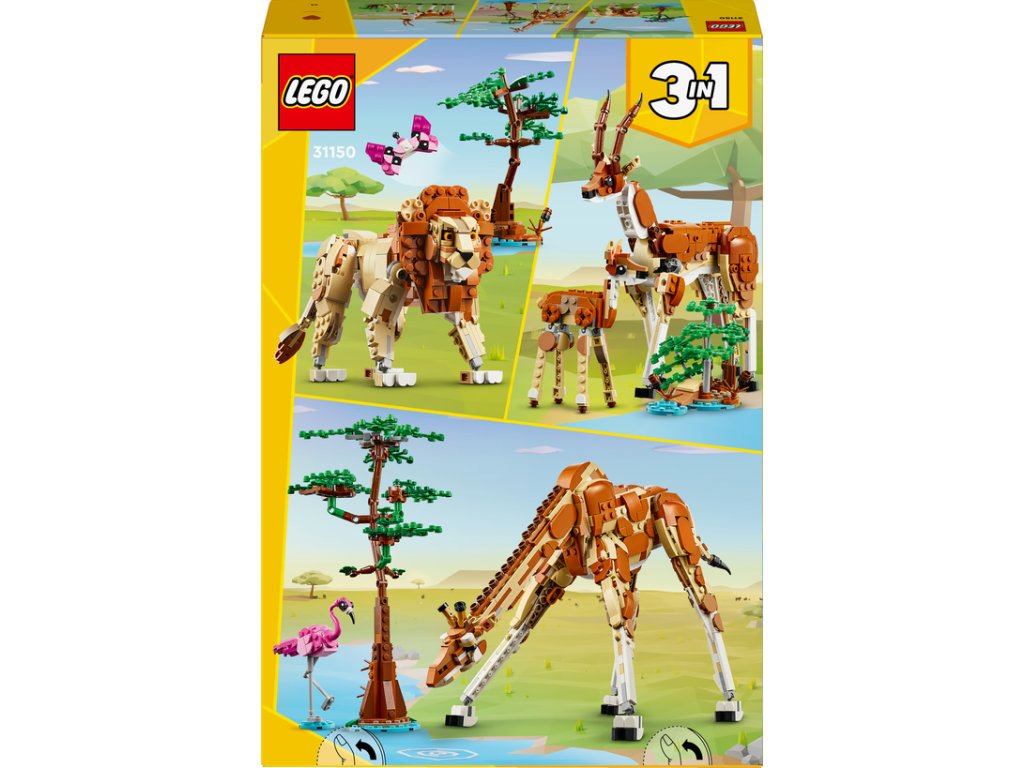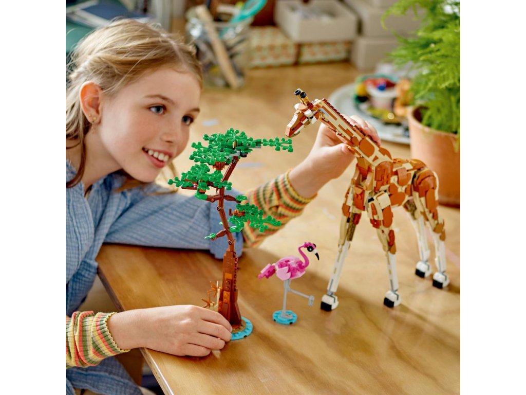 Tato stavebnice LEGO dětem přináší svět nekonečných herních možností. Ze stejné sady kostek si postaví hned 3 různá zvířata: Pohyblivou žirafu se stromem a plameňákem, kterou pak přestaví na 2 pohyblivé modely gazel – dospělou gazelu s mládětem – se 2 keři nebo model přeskládají na lva se stromem a motýlem.