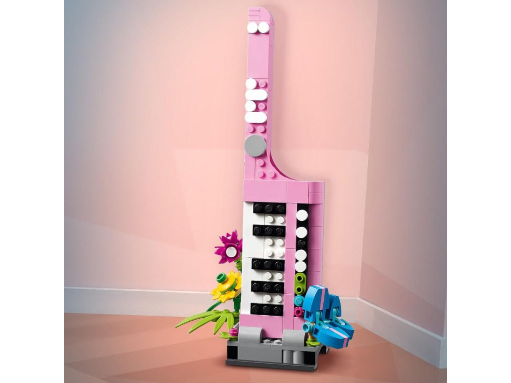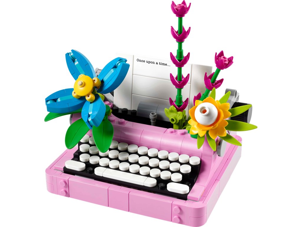 Fanoušci LEGO mají na výběr ze 3 různých květinových stavebnic: postaví si psací stroj s květinami; keytar na stojanu s květinami nebo květináč s perem a sešitem. Součástí přestavitelné stavebnice jsou také 3 samolepky s milými frázemi, kterými děti modely z kostek dozdobí.