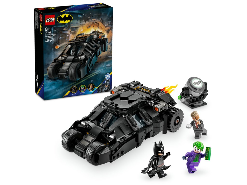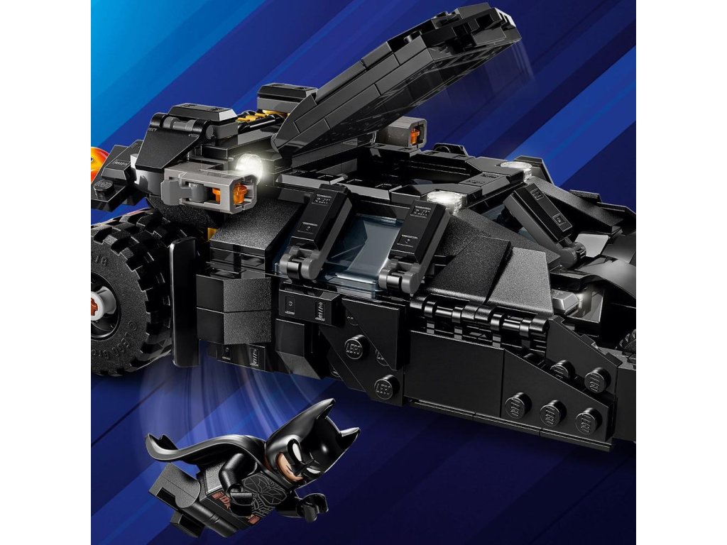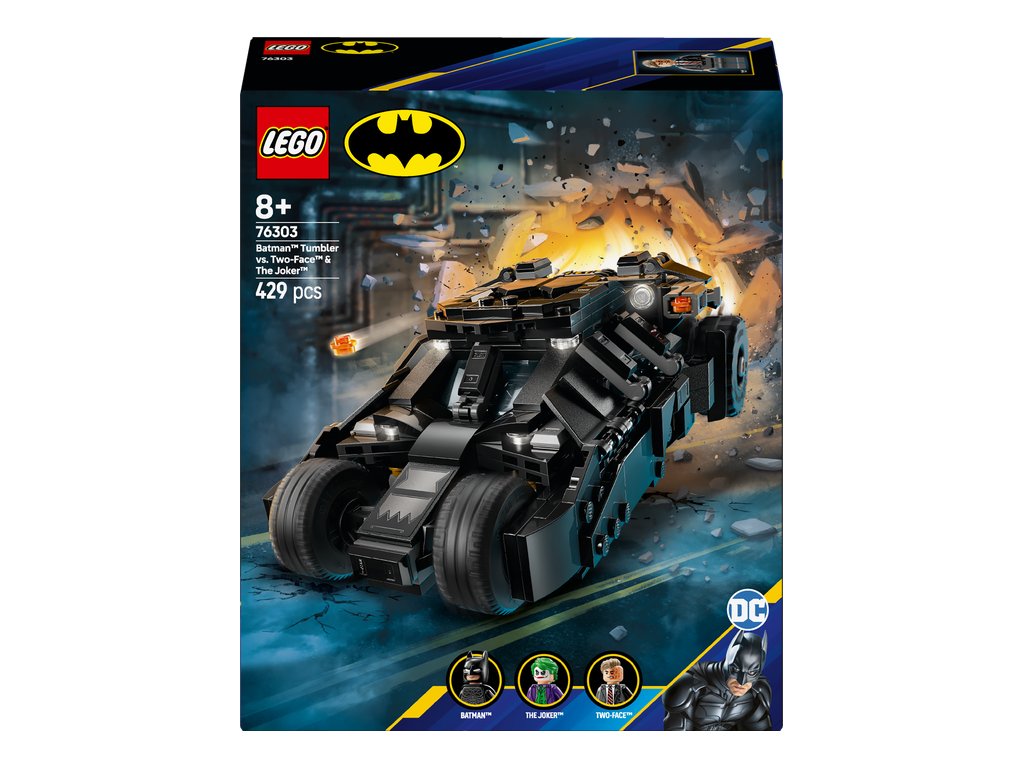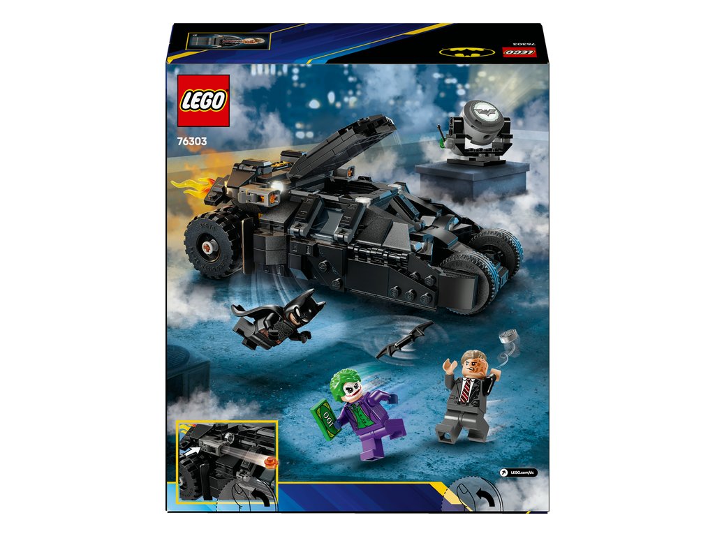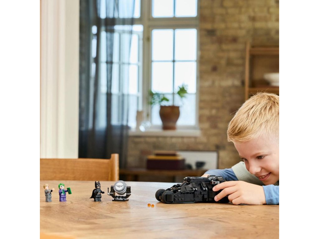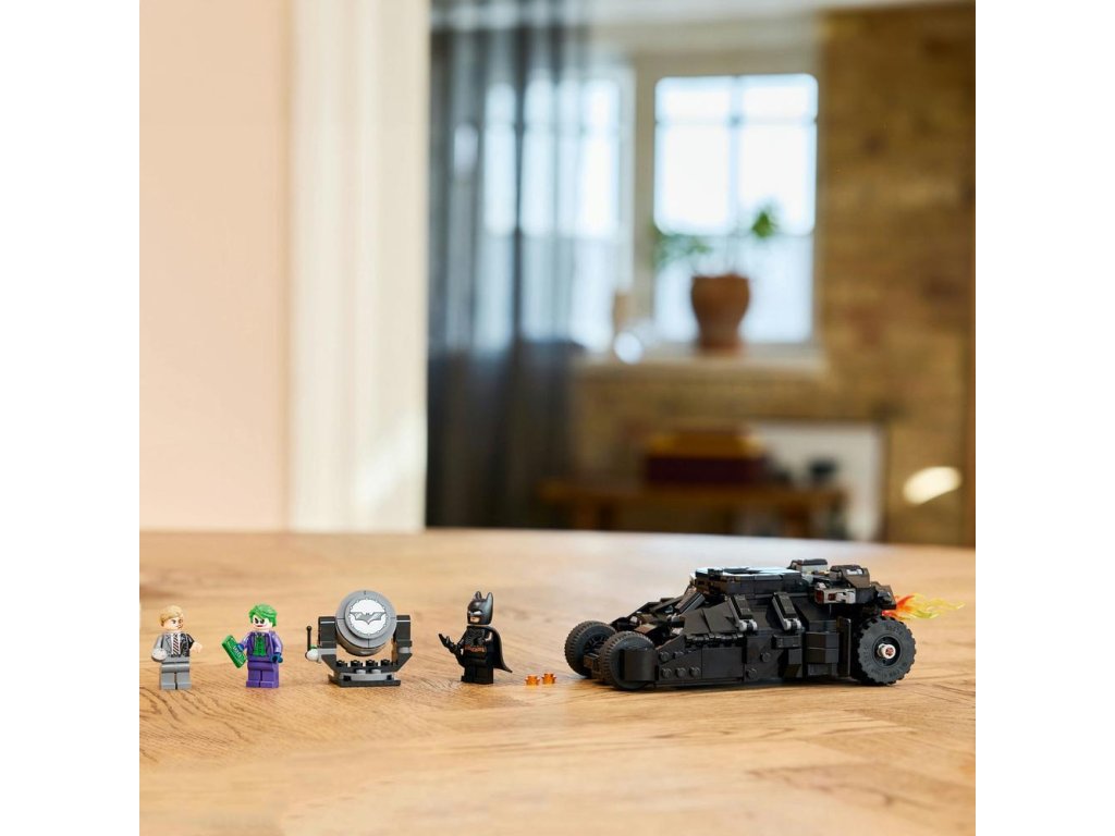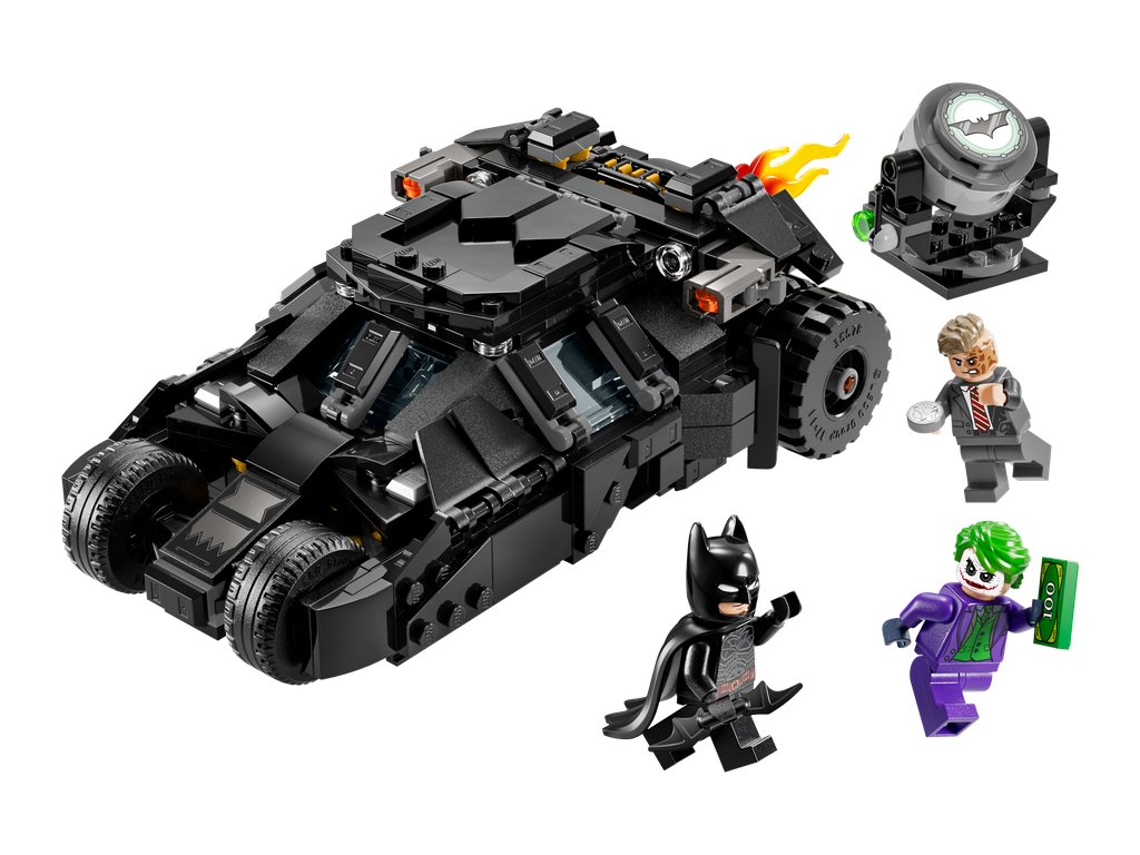 Tato superhrdinská stavebnice LEGO obsahuje 3 minifigurky oblíbených postav: Batmana vyzbrojeného Batarangem, Jokera s balíkem peněz a Two-Face s typickou stříbrnou mincí. Sestavitelný Tumbler Batmobil lze otevřít a odhalit přístrojovou desku a kokpit s prostorem pro Batmana. Z koncovky výfuku vozidla vyčnívá odnímatelný prvek plamene. Projektor Bat-Signalu (nesvítí) lze naklánět a otáčet o 360 stupňů v obou směrech. Pro ještě větší digitální zábavu stavitelé můžou přibližovat a otáčet modely ve 3D a sledovat svůj pokrok pomocí zábavné a intuitivní aplikace LEGO Builder.