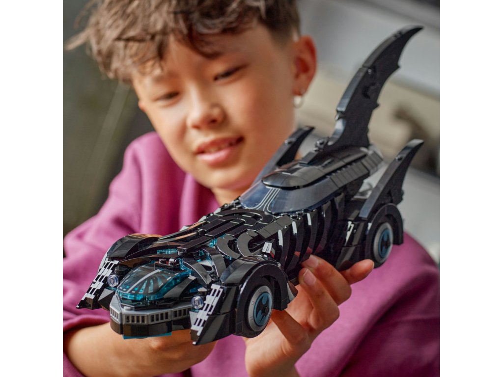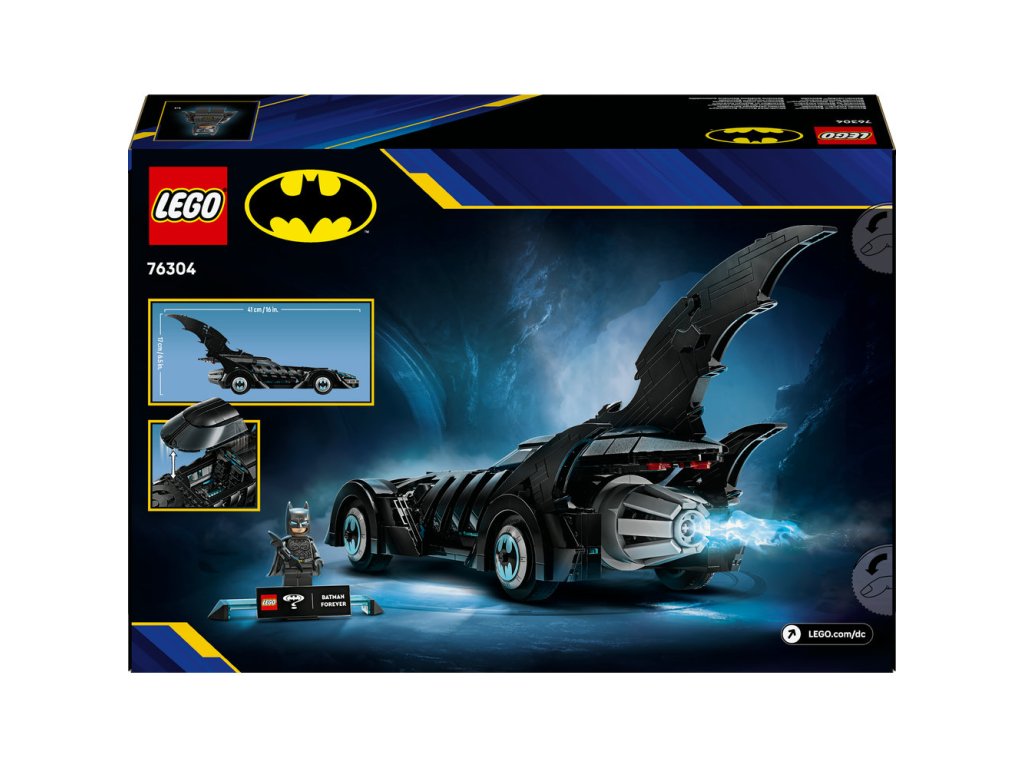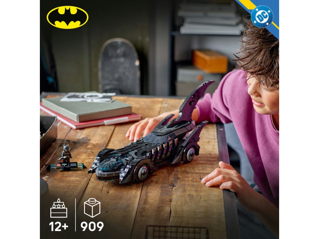 Stavebnice LEGO® DC Batman™ (76304) Batman navždy™ Batmobil je sběratelský model pro fanoušky superhrdinů DC, kteří hledají obohacující stavitelský projekt. Až si děti dohrají, můžou model vystavit světu na odiv. Tato kreativní stavebnice LEGO DC Batman představuje skvělý tip na dárek pro kluky a holky od 12 let. Tato autentická replika kultovního vozu z filmu Batman navždy obsahuje tvarované čelní sklo, pohyblivá kola, dekorace a otevírací kokpit, který odhaluje propracovaný interiér. Součástí vozidla je také minifigurka Batmana s vlastním speciálním podstavcem. Pro ještě větší porci digitální zábavy stavitelé můžou přibližovat a otáčet modely ve 3D a sledovat pokrok pomocí zábavné a intuitivní aplikace LEGO Builder. Stavebnice obsahuje 909 dílků.Dodatočné parametre