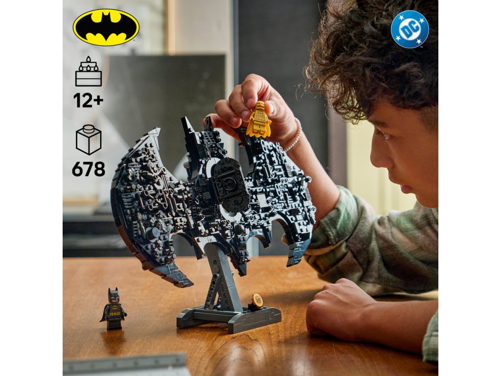 • ROZMĚRY – Stavebnice LEGO® DC Logo Batman™ se skládá z 678 dílků a měří přes 23 cm na výšku, 36 cm na šířku a 9 cm do hloubky
