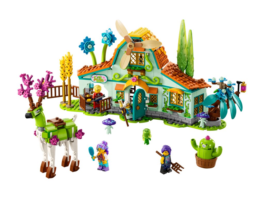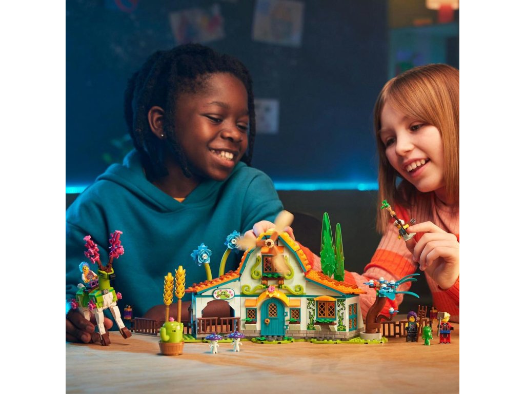 Stavebnice LEGO® DREAMZzz™ (71459) Stáj snových stvoření je inspirována televizním seriálem a zavádí děti od 8 let do kouzelného světa plného přírodních detailů a nových kamarádů, kde se setkají s bájnými stvořeními a postarají se o kouzelné květiny. Je plná úžasných detailů, které podnítí dětskou představivost. Děti nadchne prozkoumávání funkčního větrného mlýnu, stodoly (s otevíracími okny a vraty) a seznamování se s bájnými novými kamarády, jako jsou 2 stvoření ze Světa snů.