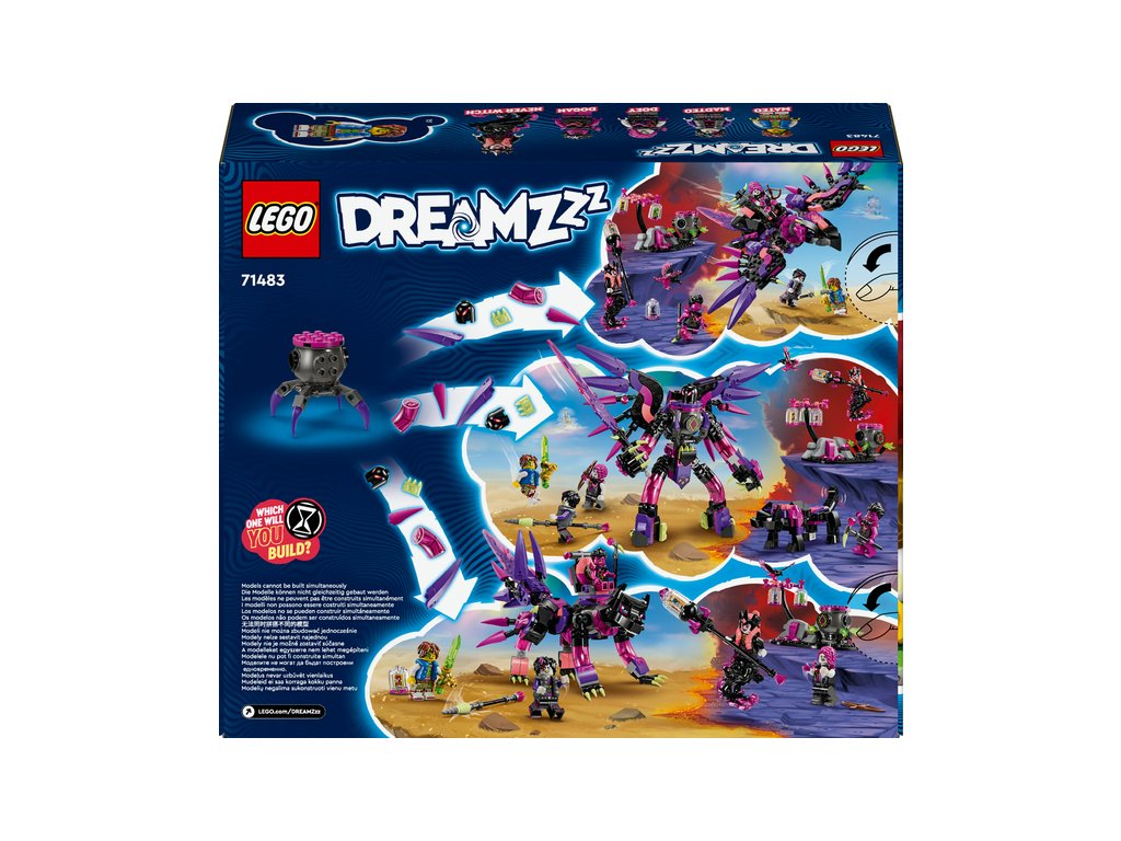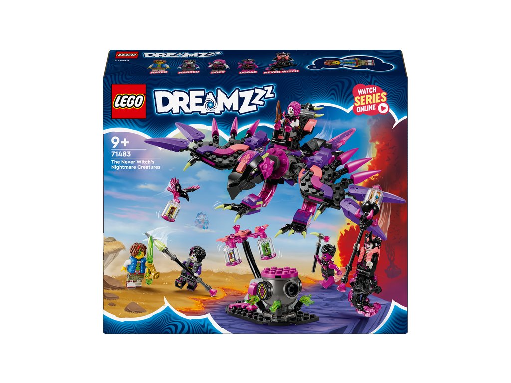 Popusťte uzdu své fantazii s kouzelnou stavebnicí LEGO® DREAMZzz™ (71483) Nikdyčarodějnice a její stvoření z noční můry pro děti od 9 let. Tato přestavitelná fantasy stavebnice je inspirovaná napínavým televizním seriálem a umožní klukům a holkám seznámit se se zlými stvořeními Nikdyčarodějnice.