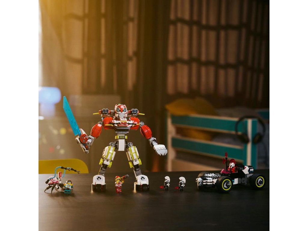 Stavebnice přináší hned 2 strhující možnosti stavění a děti si užijí spoustu zábavy při stavění červeného herního letadla, které pak přestaví na tygřího robota a hot rod nebo na rychlé závodní auto a robota. Tygří robot a robotické stvoření se dokážou hýbat a oba režimy stavění se pyšní řadou skvělých funkcí. Součástí stavebnice závodního auta je také minifigurka Coopera, Zera a snílka, Z-Flek, Kybermozkový pavouk a 2 Kybervěci, které vdechnou život akci a podnítí nápadité hraní.