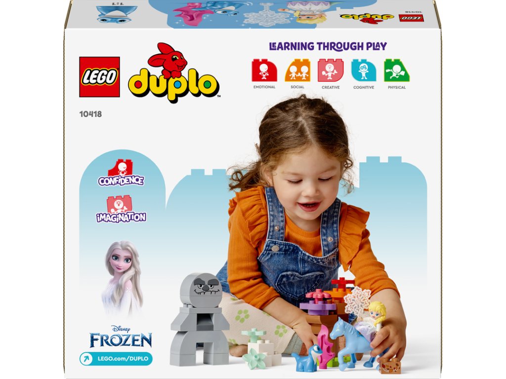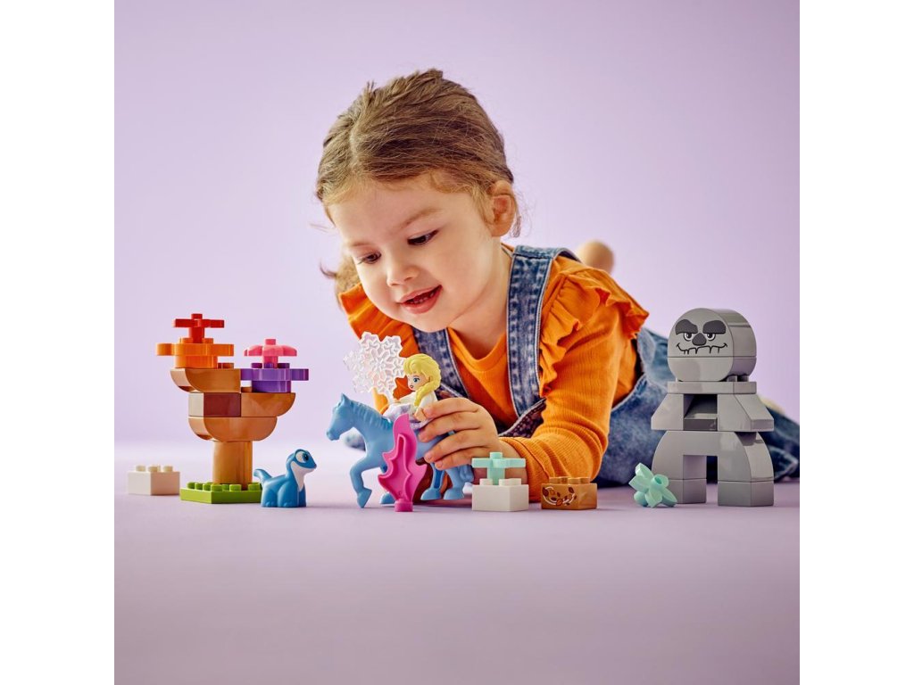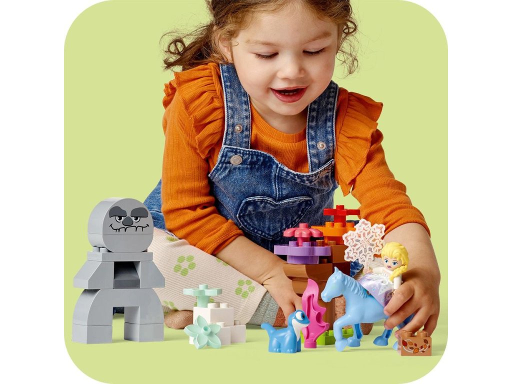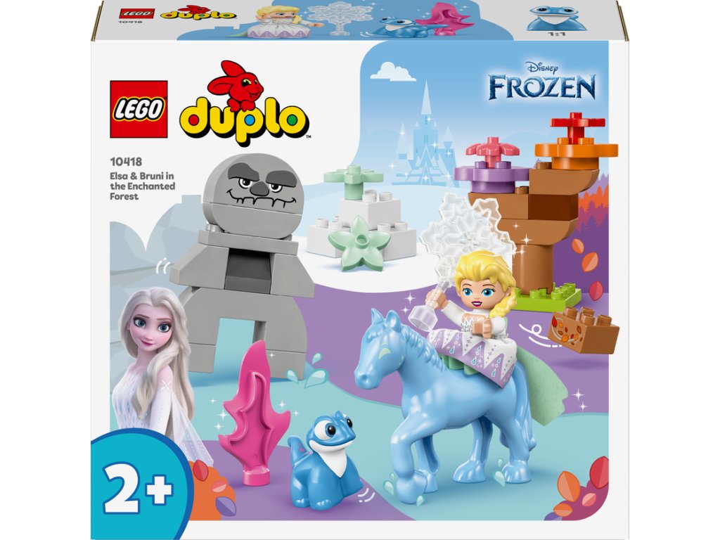 Děti od 2 let se vydají na dobrodružství se stavebnicí LEGO® DUPLO® ǀ Disney (10418) Elsa a Bruni v začarovaném lese. Tato stavebnice malé stavitele dovede do začarovaného lesa, kde se setkají s postavami z filmu Ledové království 2 z dílny studia Disney: Elsou, mlokem Brunim a kouzelným vodním koněm Nokkem. Malé děti prohloubí svou schopnost sebevyjádření při přehrávání scén z filmu nebo vymýšlení vlastních příběhů. Tato fantastická stavebnice přináší spoustu úchvatných detailů, které přímo vybízejí k vyprávění. Elsin sněžný krystal ve tmě svítí na cestu. Když se přibližuje sestavitelný zemní obr, objeví se Bruniho plamen. Postavy se ale skamarádí, když si uvědomí, že všechna stvoření pomáhají udržet přírodu v rovnováze. Minipanenka Elsy naskočí na figurku koně Nokka a ve víru podzimního listí se spolu přenesou k dalšímu dobrodružství. Tato stavebnice řady LEGO® DUPLO® ǀ Disney podle filmu Ledové království 2 umožní rodičům a dalším blízkým prožívat důležité vývojové milníky společně s dětmi.