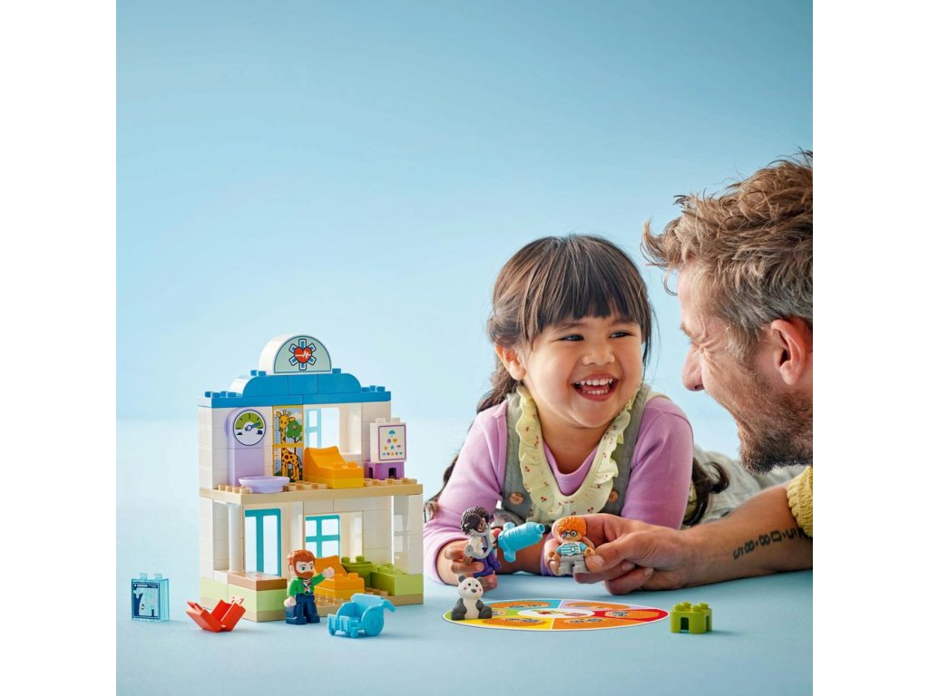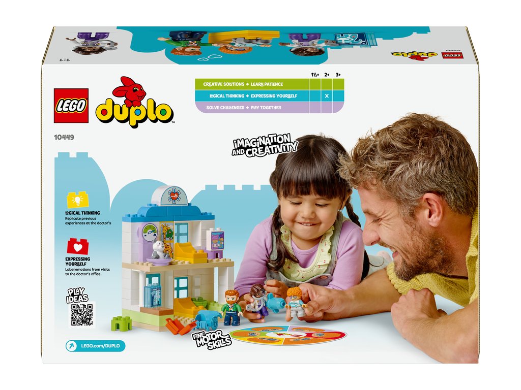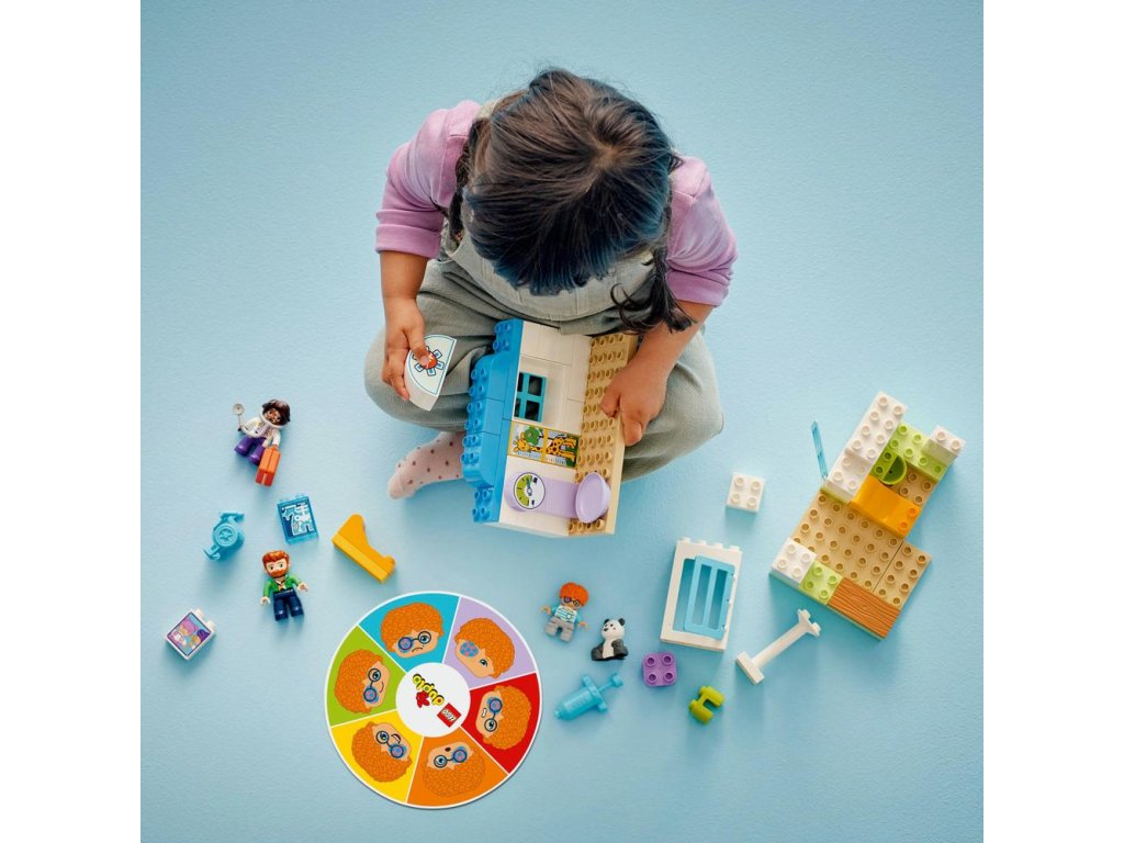 Stavebnice představuje krásný dárek pro malé děti, které si rády hrají na postavy s různými emocemi. Součástí je hrací kolečko, které rodičům umožňuje společně s dětmi prozkoumat různé pocity figurky chlapce, který se chystá na návštěvu lékaře. Stavebnice LEGO DUPLO pomáhají rozvíjet sociální a emoční schopnosti a děti se s nimi mohou těšit na spoustu poutavých příběhů, každodenní hrdiny a rozmanité postavy, které jim pomůžou porozumět okolnímu světu.