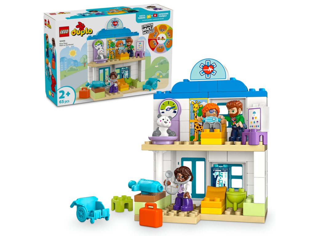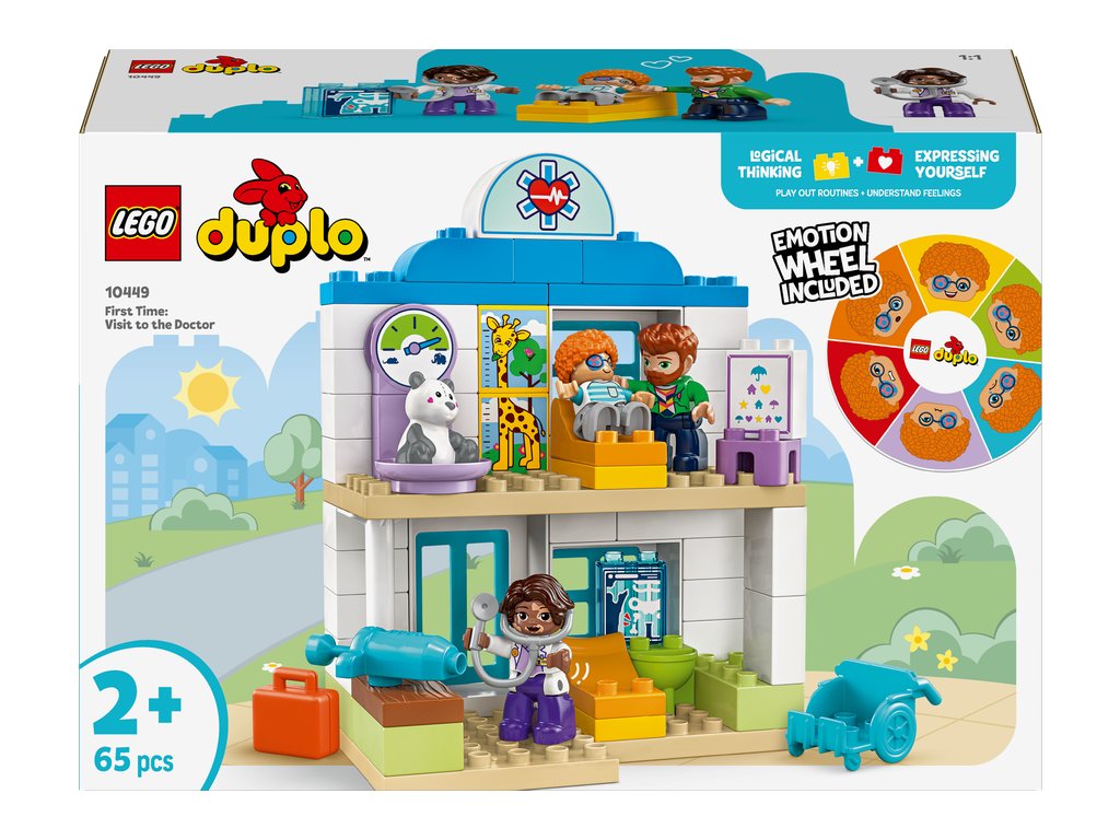 Děti od 2 let objeví své emoce se stavebnicí LEGO® DUPLO® Město (10449) První návštěva u lékaře. Tato stavebnice jim pomáhá procvičovat jemnou motoriku, hrát se na příběhy a cítit empatii k ostatním při hře na malého pacienta, který se chystá na zdravotní prohlídku.