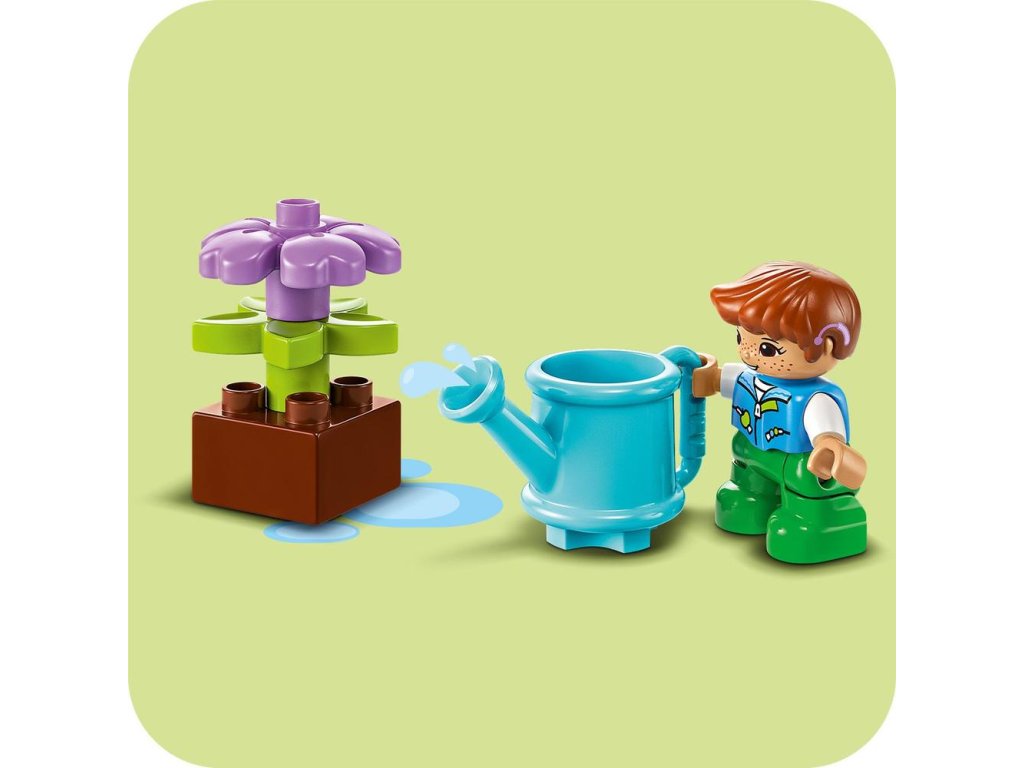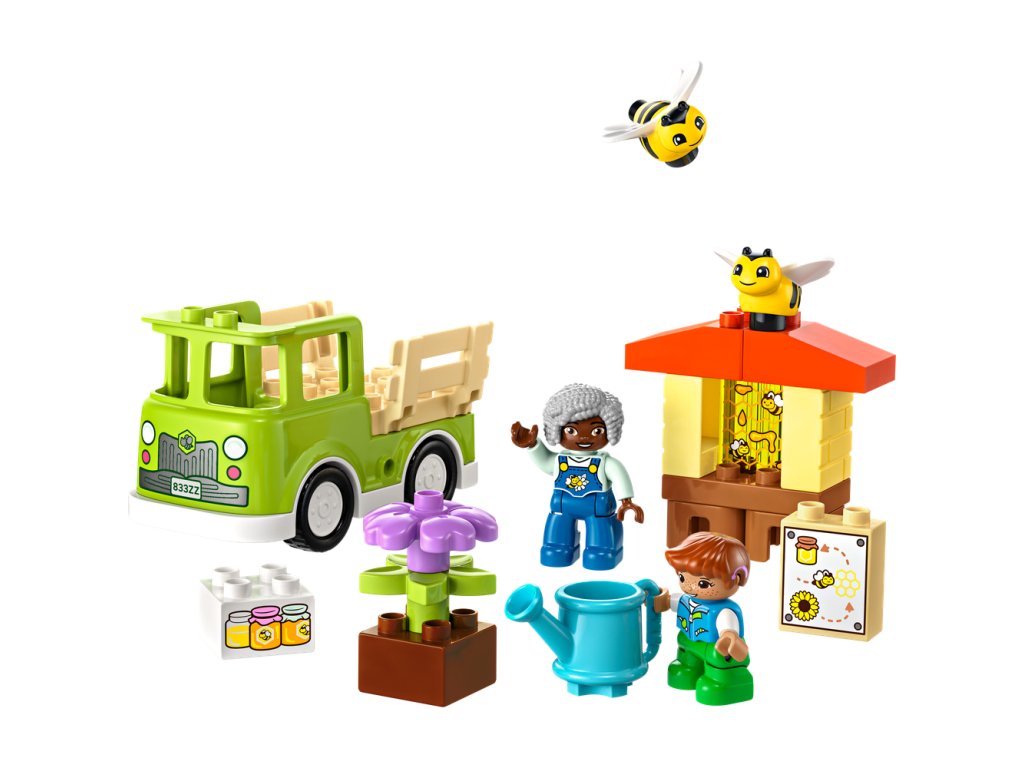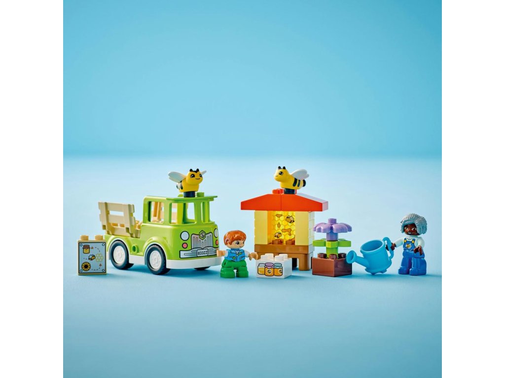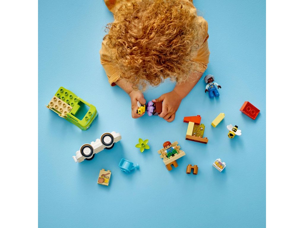 Děti poskládají stonky květin, které „rostou“, a procvičí své jemné motorické schopnosti. Užijí si hodiny zábavy při hře s včelkami, které sbírají nektar a v úlu z něj tvoří med. Nechybí ani 2 figurky LEGO DUPLO, kterým malí stavitelé pomohou sbírat med, naložit jej na model náklaďáku a odvézt ho na tržiště.