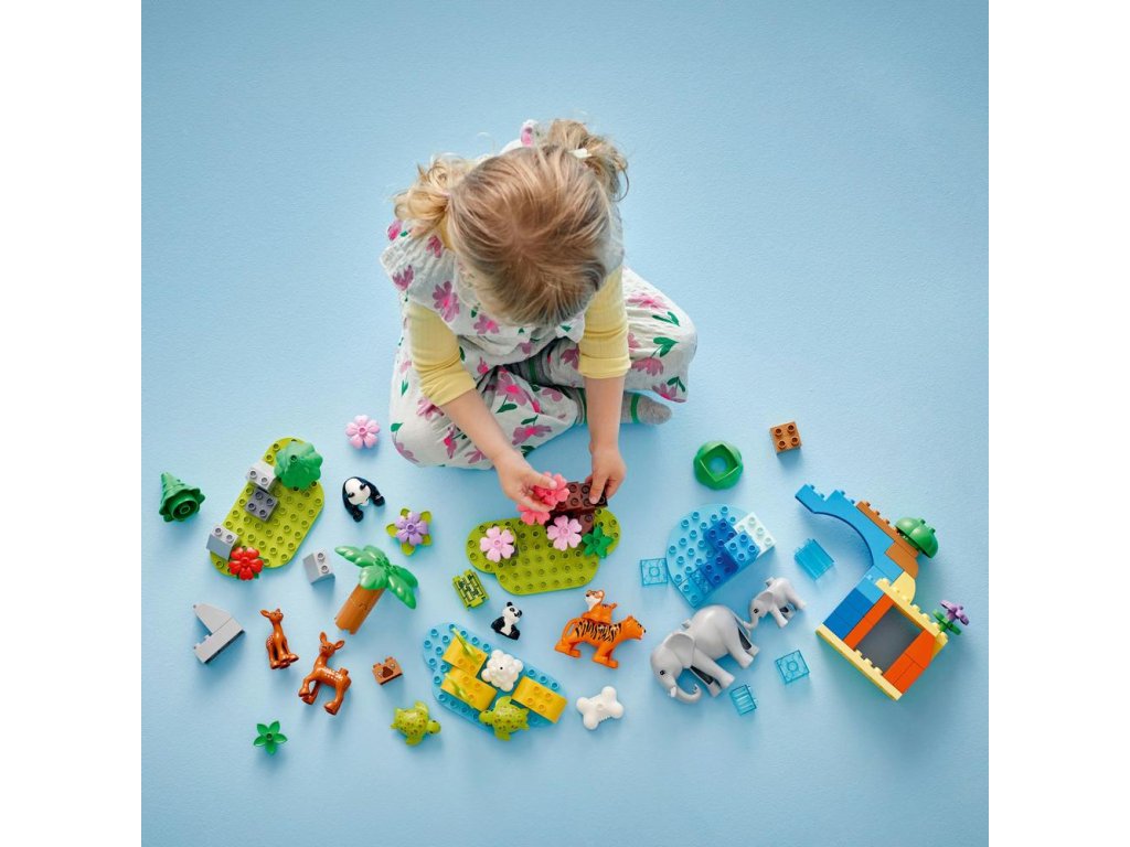 Malí milovníci hraček s motivem přírody si s touto stavebnicí procvičí celou řadu dovedností: Spárují a porovnají dospělá zvířata a jejich mláďata a rozhodnou o tom, jaké jídlo jednotlivá zvířátka jedí. Při přestavování této stavebnice LEGO DUPLO 3 v 1 pak zapojí kreativitu a představivost.