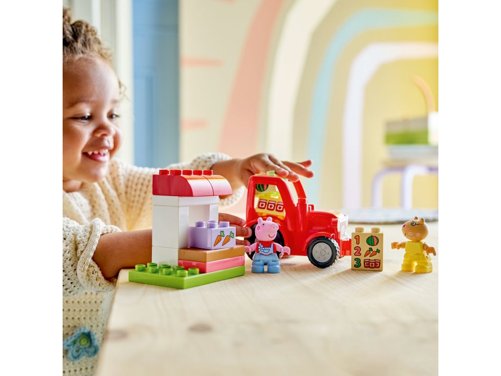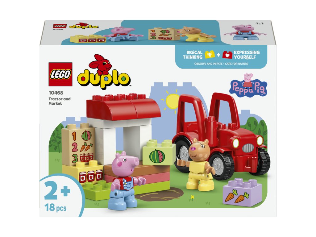 • HRAČKA PRASÁTKO PEPPA – Batolata od 2 let si se stavebnicí LEGO® DUPLO® Prasátko Peppa Traktor a tržnice (10468) můžou připomenout scény ze svého oblíbeného seriálu a hrát na provozování farmářského obchodu