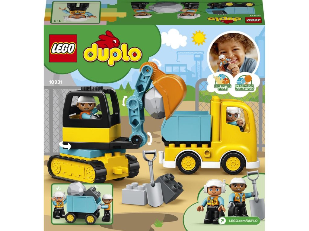 - Se sadou LEGO® DUPLO® Náklaďák a pásový bagr (10931) si rodiče a jejich předškoláci zkusí, jaké to je pracovat na staveništi. A zatímco děti objevují neomezené možnosti otevřené hry, rozvíjejí dovednosti důležité pro život.