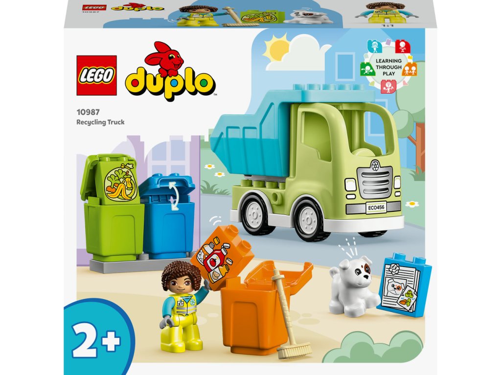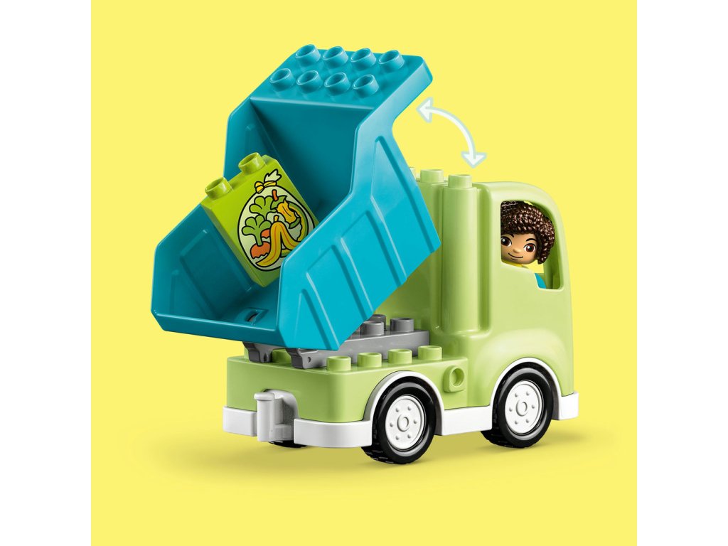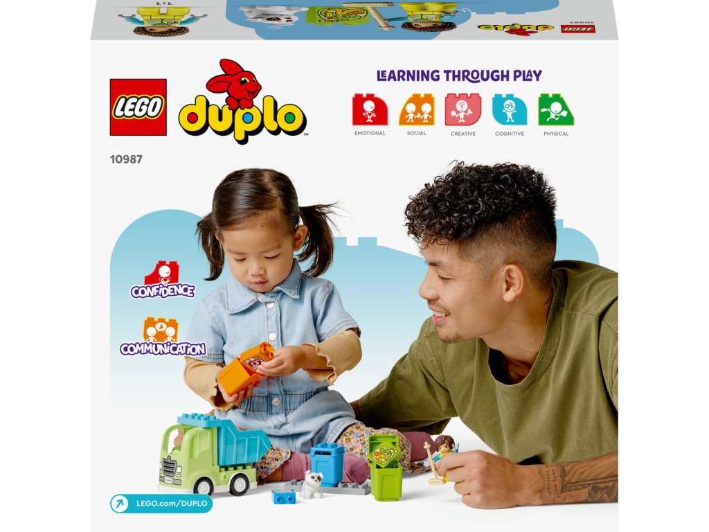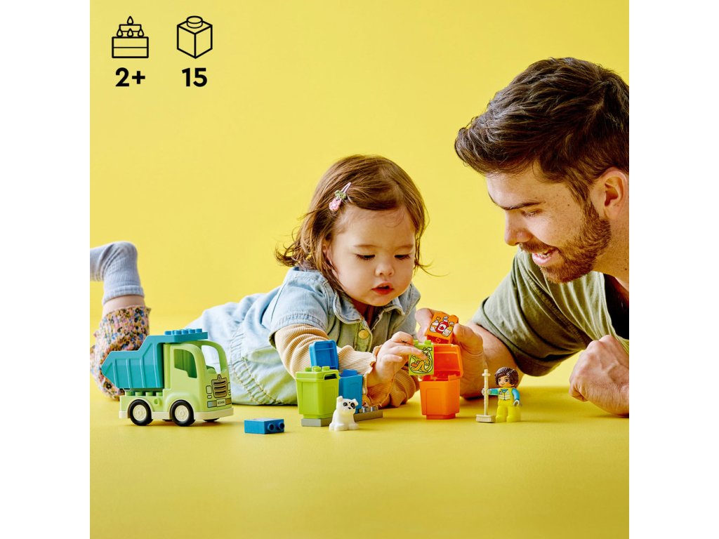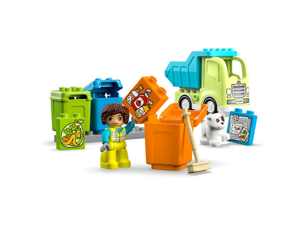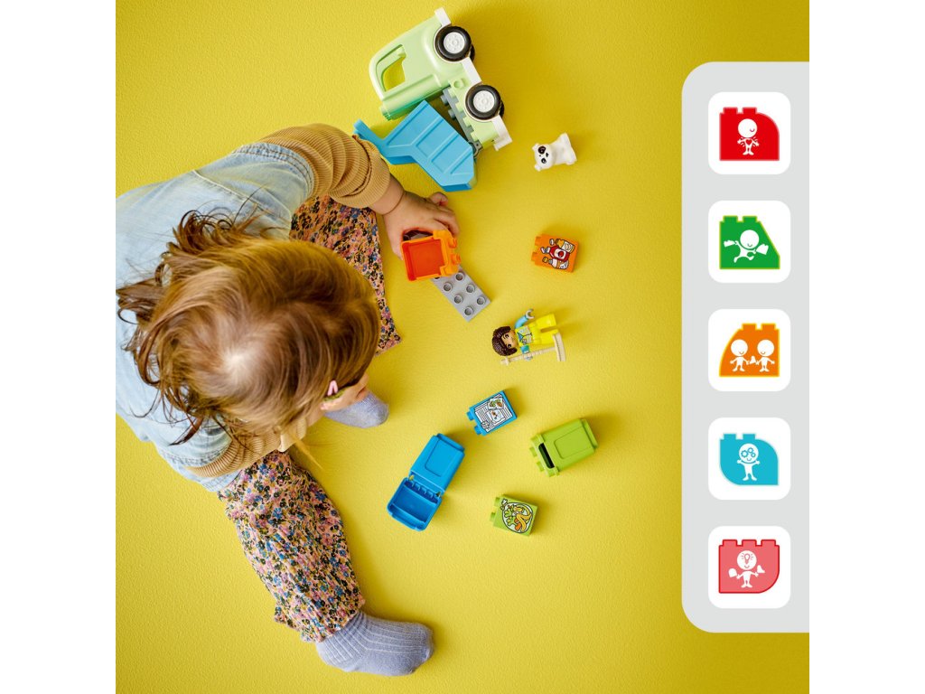 • Součástí je náklaďák LEGO® DUPLO®, 3 popelnice, 1 figurka pracovníka a štěně