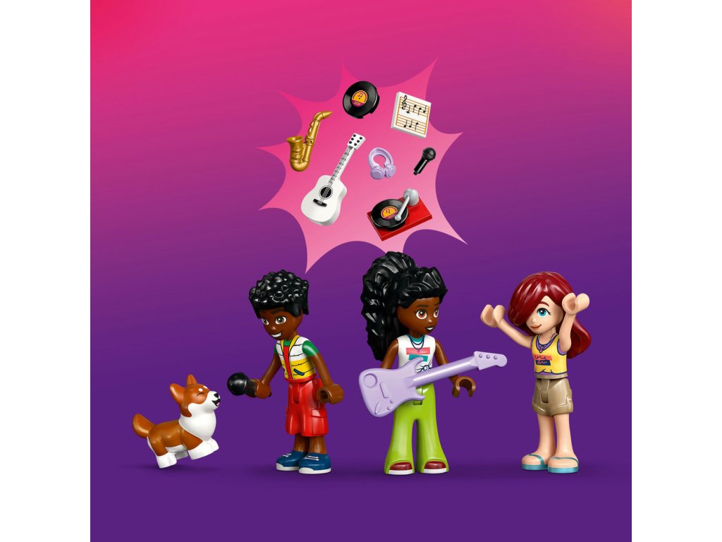 • Součástí jsou 3 postavy LEGO® Friends, figurka corgiho a maskota v podobě noty