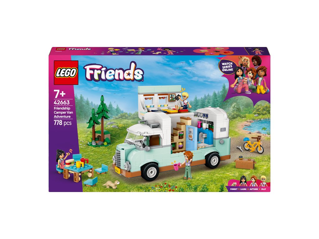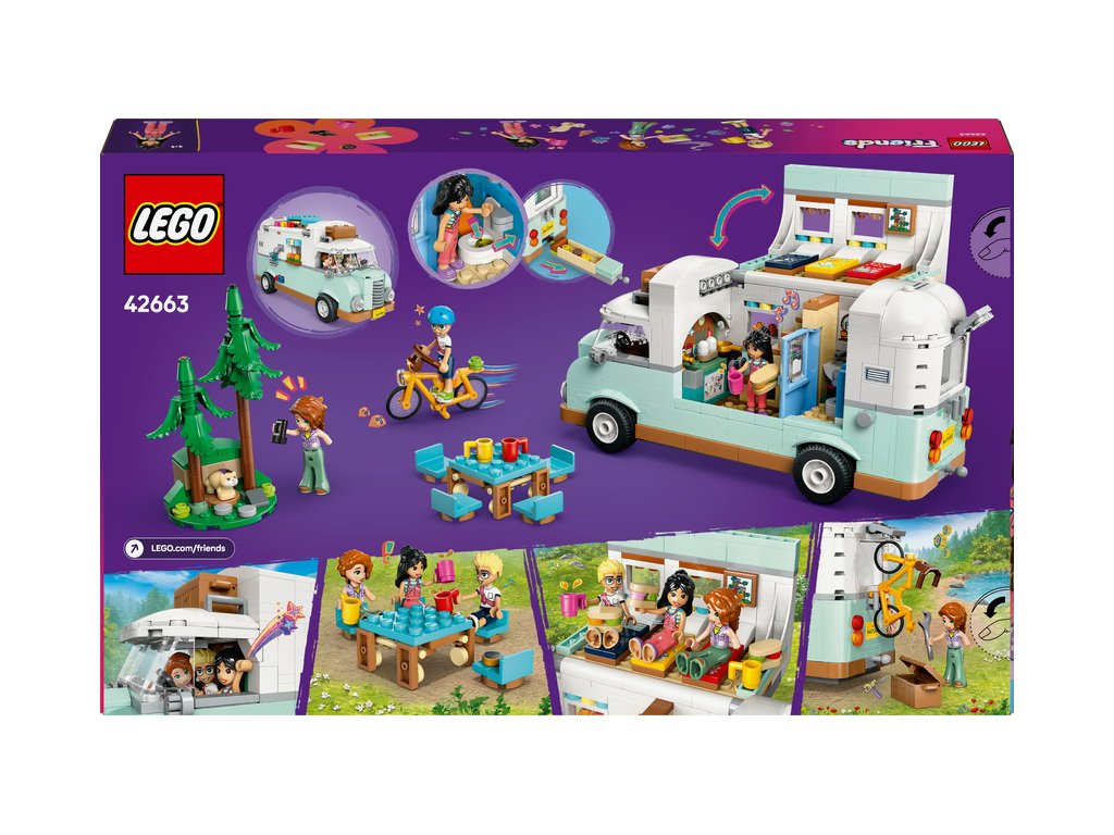 Holky a kluci od 7 let si se stavebnicí LEGO® Friends (42663) Dobrodružství s karavanem přátelství užijí spoustu zábavy. Sada obsahuje sestavitelné vozidlo LEGO, 3 minipanenky a figurku fretky.