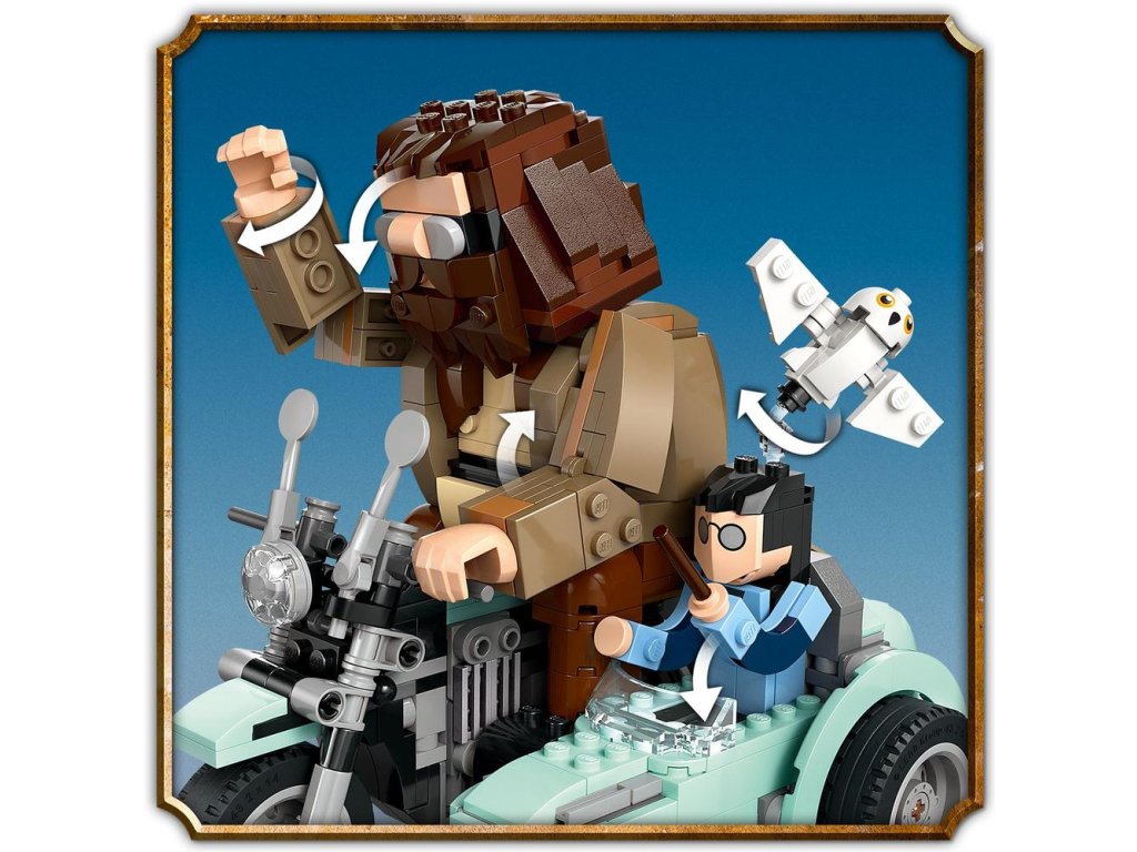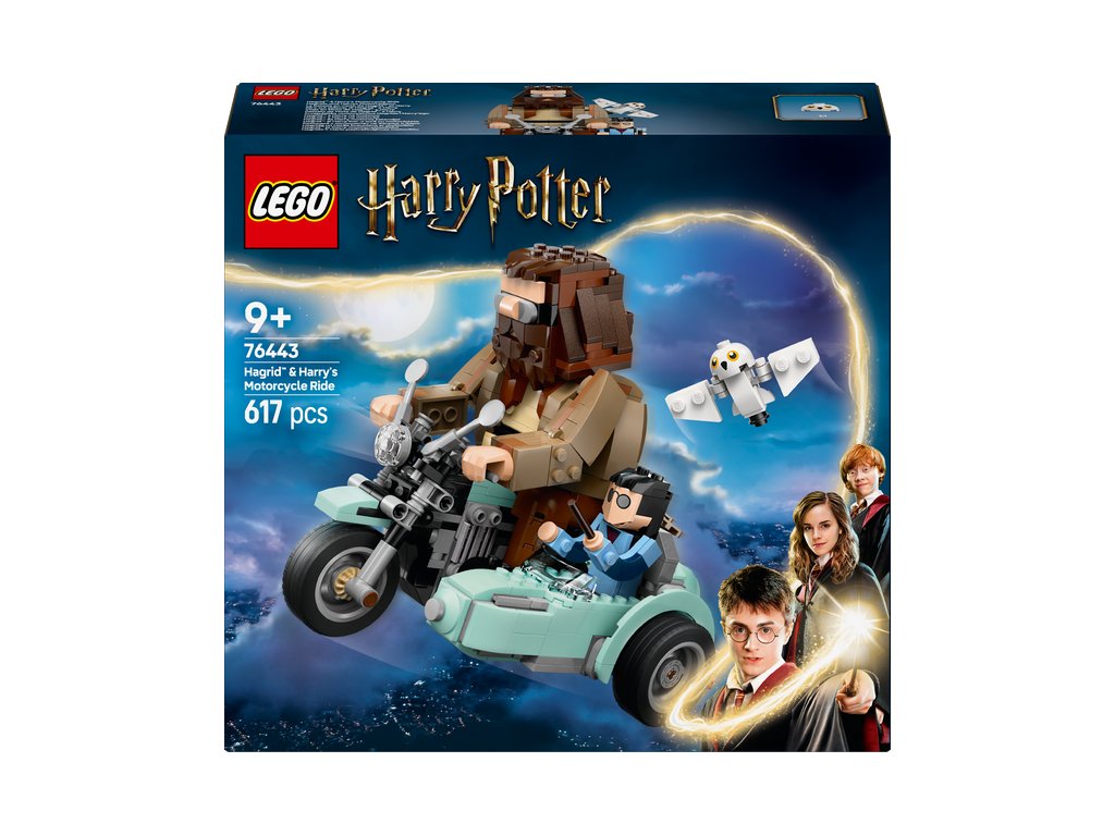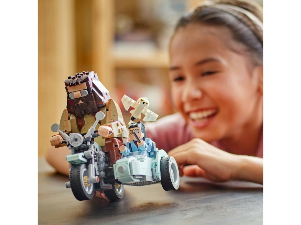 Pevně se držte a užijte si jízdu s Hagridem a Harrym na motorce (76443) s touto kouzelnou stavebnicí pro holky, kluky a fanoušky kouzelnického světa. Tato výstavní sada z řady LEGO® Harry Potter™ představuje skvělý narozeninový dárek pro děti od 9 let a obsahuje vestavěné pohyblivé figurky Harryho Pottera, Hedviky a Rubeuse Hagrida na motorce a v sajdkáře. Kola vozidla LEGO se otáčejí, a děti si tak můžou připomenout slavné scény z filmu Harry Potter a Relikvie smrti nebo model vystavit jako poutavý výstavní kousek ze světa Harryho Pottera.