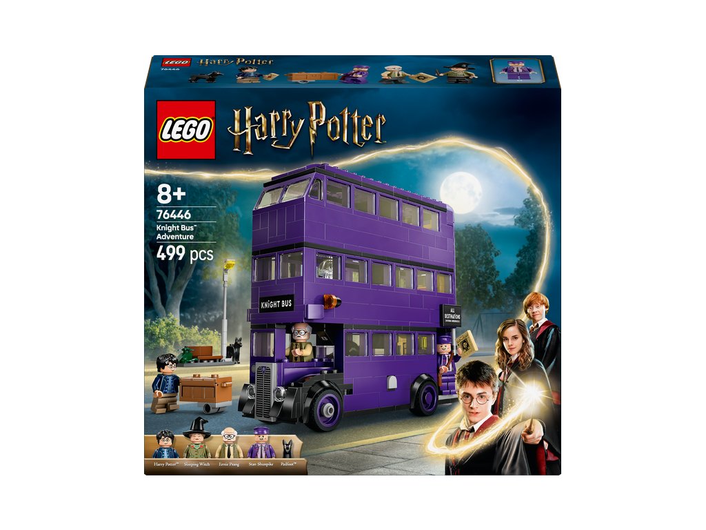 Nastupovat! Vydejte se na napínavé Dobrodružství v Záchranném kouzelnickém autobusu (76446) s touto kouzelnou stavebnicí LEGO® Harry Potter™ pro děti. Stavebnice představuje jedinečný narozeninový dárek pro kluky a holky od 8 let a všechny fanoušky, kteří objevují svět čar a kouzel. Jedná se o vůbec nejpropracovanější model slavného třípatrového autobusu z LEGO kostek. Oddělte horní patra a nahlédněte do interiéru, ve kterém najdete pohyblivé postele a kymácející se lustr pro realistickou hru.