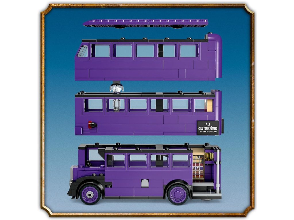 Tato kouzelná stavebnice obsahuje také 5 postav LEGO Harry Potter – Harryho Pottera, Ernieho Bouráka, Stana Silničku, spící čarodějnici a Tichošlápka – pro přehrávání nezapomenutelných scén z filmu Harry Potter a vězeň z Azkabanu. Mezi další autentické detaily patří sestavitelná pouliční lampa, u které Harry čekal (a kde ho vyděsil Tichošlápek!), než přijel Záchranný kouzelnický autobus, Harryho kufr a noviny Denní věštec titulkem „Escape from Azkaban“ („Útěk z Azkabanu“), které přináší ještě více možností kreativního hraní rolí.