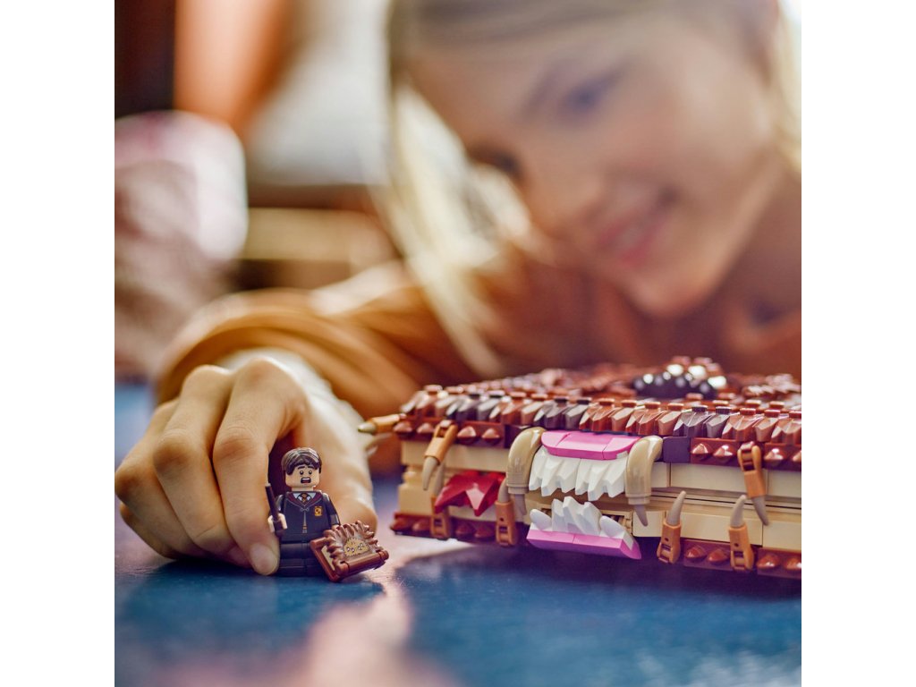 Darujte malému kouzelníkovi, čarodějce nebo mudlovi hodiny kouzelného hraní se stavebnici LEGO® Harry Potter™ (76449) Hryzající kniha Obludné obludárium. Tato zábavná fantasy stavebnice obsahuje propracovanou kostkovou repliku Obludného obludária, učebnice o péči o kouzelné tvory. Model má skrytá kola a natahovací funkci – knihu položte na rovnou plochu, natáhněte, pusťte ji a sledujte, jak se řítí pryč a při tom žvýká. Tato stavebnice pro děti představuje kouzelný vánoční nebo narozeninový dárek pro kluky, holky a fanoušky Harryho Pottera od 9 let. Obsahuje minifigurku LEGO Nevilla Longbottoma s knihou Obludné obludárium. Sestavitelnou knihu a minifigurku lze zkombinovat s dalšími sběratelskými stavebnicemi LEGO Harry Potter (prodávají se samostatně) a děti si s ní užijí ještě větší porci magického hraní.
