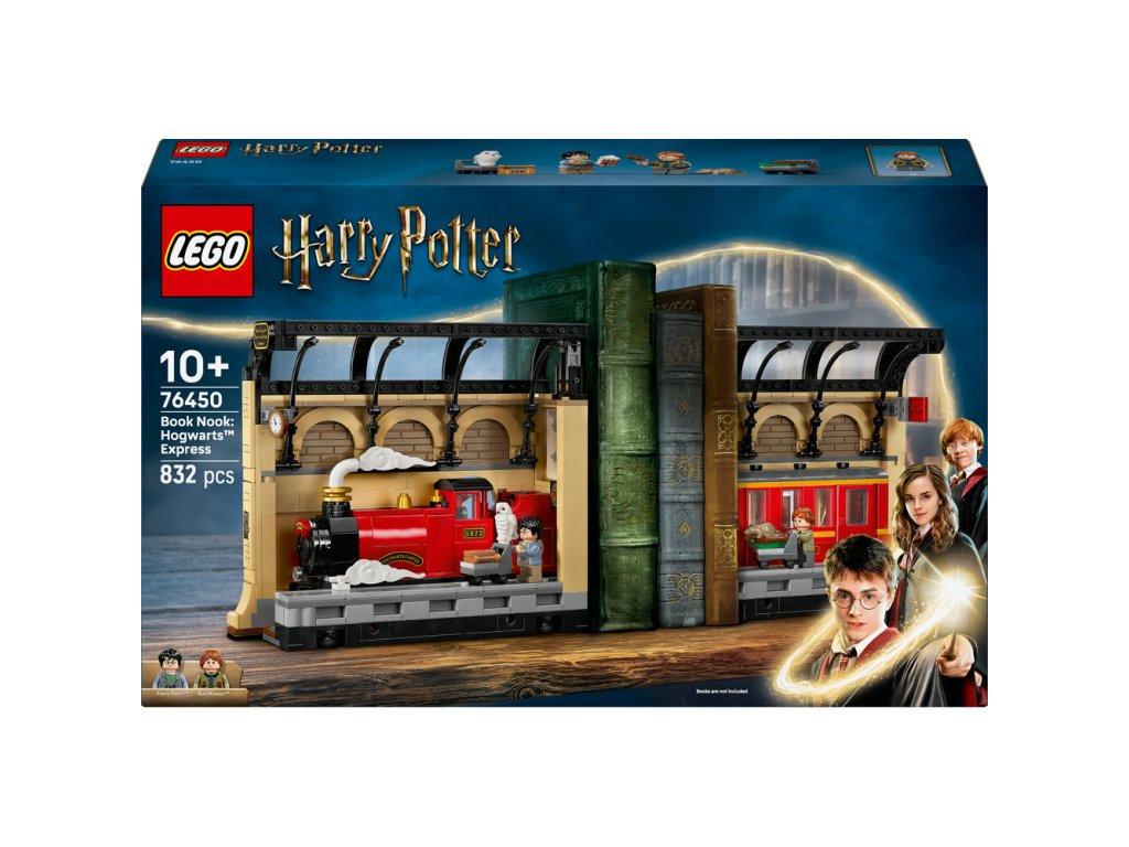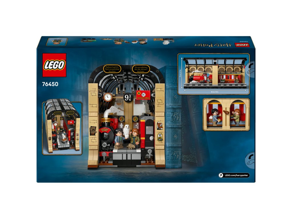 Vneste do dětské knihovny špetku kouzla s vůbec první knižní zarážkou LEGO® Harry Potter™ (76450), která obsahuje sestavitelnou část Spěšného vlaku do Bradavic – kreativní způsob, jak ozdobit knihovnu, kterou máte doma. Tato kouzelná hračka dětem umožní přehrávat si slavné scény na nástupišti 9¾ na nádraží King’s Cross s minifigurkami Harryho Pottera a Rona Weasleyho a figurkami LEGO jejich mazlíčků Hedviky a Prašivky. Model vlaku obsahuje propracovanou lokomotivu a vagón s bočními výřezy pro přístup k minifigurce. Vagón má na jednom konci zrcátka, která vytvářejí iluzi delšího vlaku. Tato zábavná sběratelská stavebnice vláčku představuje kouzelný dárek pro kluky, holky a fanoušky Harryho Pottera od 10 let a můžete si ji vystavit podle svých představ. Otevřete model pro snadné hraní na nástupišti, zavřete model tak, aby se úhledně vešel mezi knihy, nebo oddělte část s lokomotivou a vagónem a vytvořte tak knižní zarážky. Ať už se váš malý kouzelník, čarodějka nebo mudla rozhodne model vystavit jakkoli, tato knižní zarážka se stane kouzelnou dekorací s Harrym Potterem.