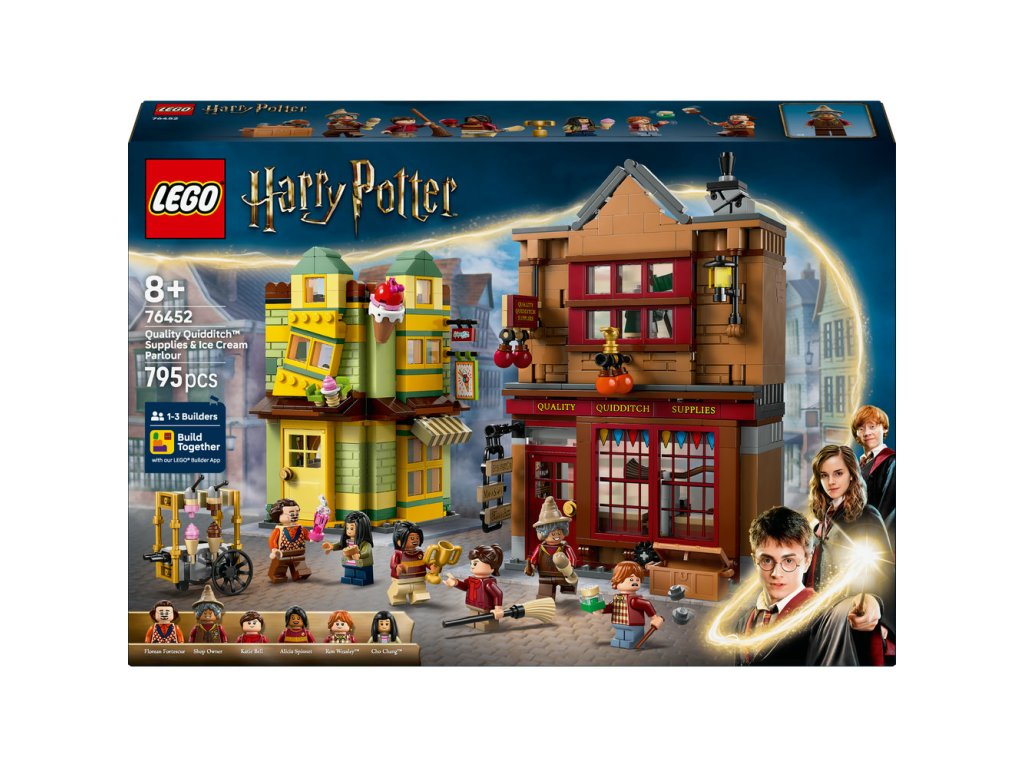 Vydejte se do obchodu Prvotřídní potřeby pro famfrpál a zmrzlinářství Floreana Fortescuea s touto stavebnicí z řady LEGO® Harry Potter™ (76452). Tento kouzelný model Příčné ulice představuje krásný dárek k narozeninám nebo Vánocům pro kluky, holky a fanoušky Harryho Pottera od 8 let. Obsahuje propracované modely 2 slavných obchodů v Příčné ulici z kostek LEGO a 6 minifigurek. V obchodě Prvotřídní potřeby pro famfrpál najdete létající koště a spoustu vybavení pro hraní famfrpálu, které inspiruje ke kreativnímu hraní. Zmrzlinářství lze otevřít pro snadné hraní a nabízí posezení uvnitř i venku a retro zmrzlinový stánek na ulici. Prvotřídní potřeby pro famfrpál a zmrzlinářství lze propojit mezi sebou nebo k dalším modelům z řady LEGO Harry Potter Příčná ulice (prodávají se samostatně) a vytvořit tak okouzlující nákupní ulici z kostek. • Stavějte společně s přáteli a rodinou – Aplikace LEGO® Builder nabízí zábavný společný stavitelský zážitek.
