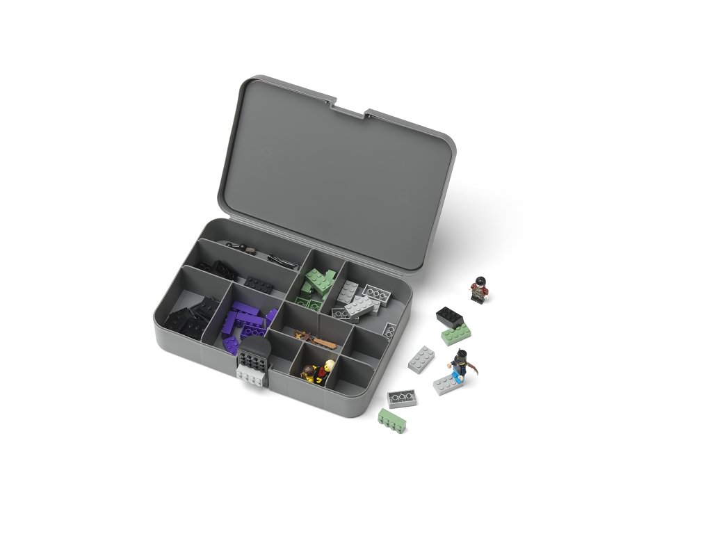 Úložný box s přihrádkami s LEGO Harry Potter motivem. Do přihrádek mohou děti schovávat své oblíbené LEGO minifigurky nebo uklízet LEGO kostičky. Boxy jsou stohovatelné na sebe a jistě je využijí nejen děti, ale i dospělí. Uzavírací klip je proveden jako LEGO destička, takže lze na ni např. přicvaknout barevnou kostičku pro odlišení více boxů s různým obsahem.