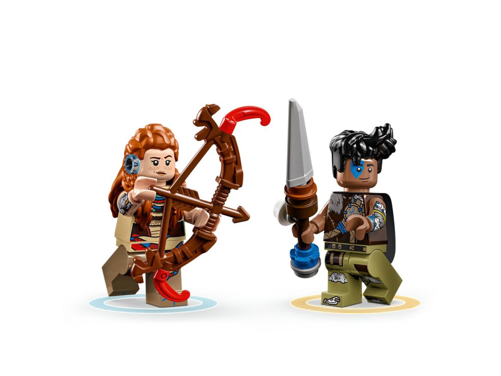 • Minifigurky Aloy a Varla z LEGO® Horizon Adventures™ s lukem a oštěpem