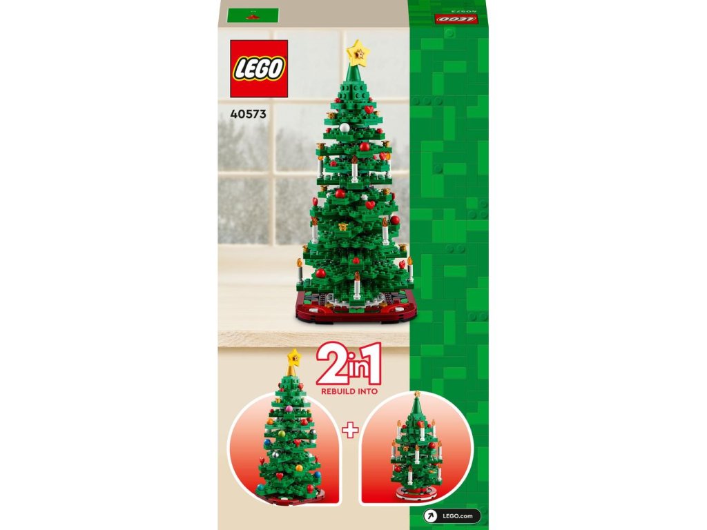 Malí skřítci od 9 let si užijí spoustu zábavy při objevování 2 možností stavění této sady LEGO 2 v 1. Postaví větší model vánočního stromku nebo 2 miniaturní modely vánočních stromečků. Všechny jsou zdobené barevnými vánočními ozdobami a svíčkami a žlutou hvězdou nahoře. Po sestavení si model vystaví jako v pokoji nebo kanceláři a poslouží také jako krásná ozdoba stolu.
