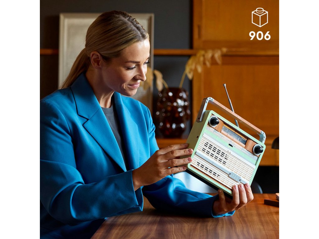 • Stavebnice se skládá z 906 dílků a model rádia měří přes 23 cm na šířku