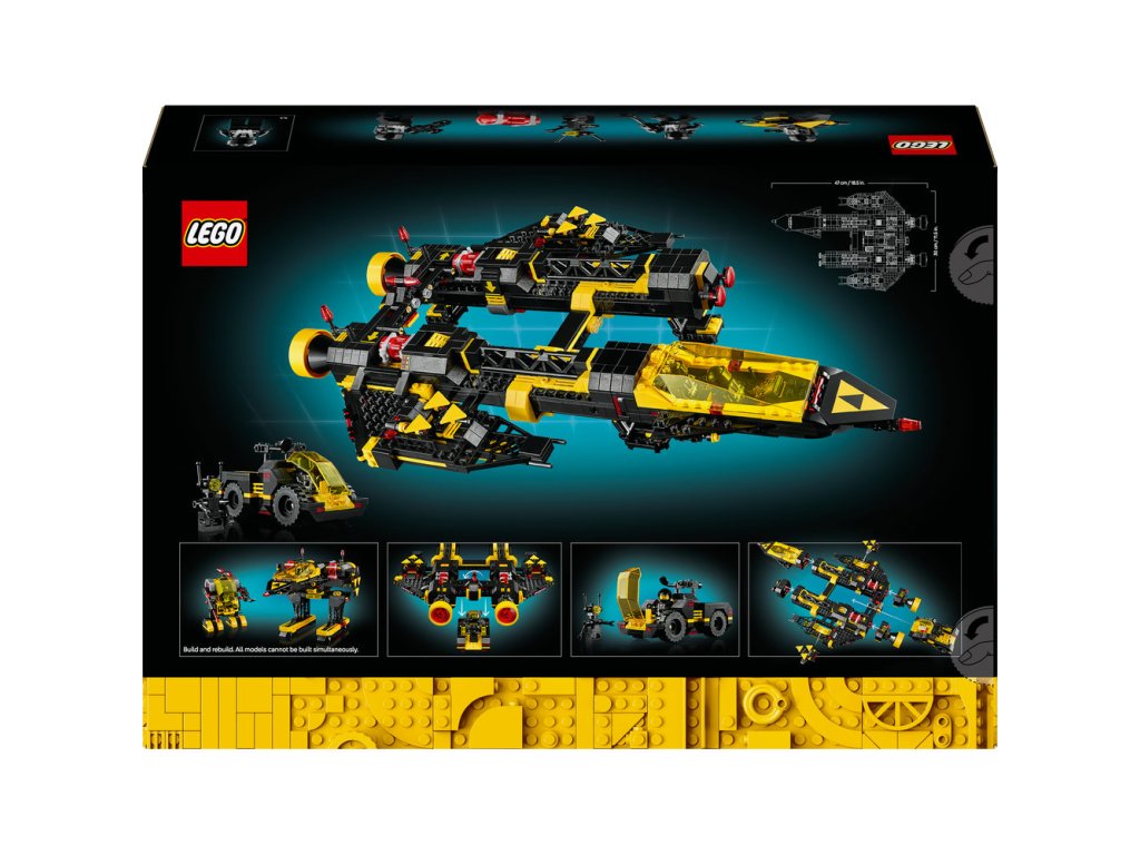 Postavte si modulární verzi kultovní asymetrické vesmírné lodi Blacktron Renegade s novými funkcemi, jako je výsadkový modul planetárního roveru, podvozek, 2 vesmírné spídry na křídlech a 2 motorové kanystry. Stavebnice obsahuje 3 minifigurky Blacktron a figurku droida a pomocí online návodu na stavění ji lze přestavět na vylepšenou verzi LEGO Alienator z 80. let.