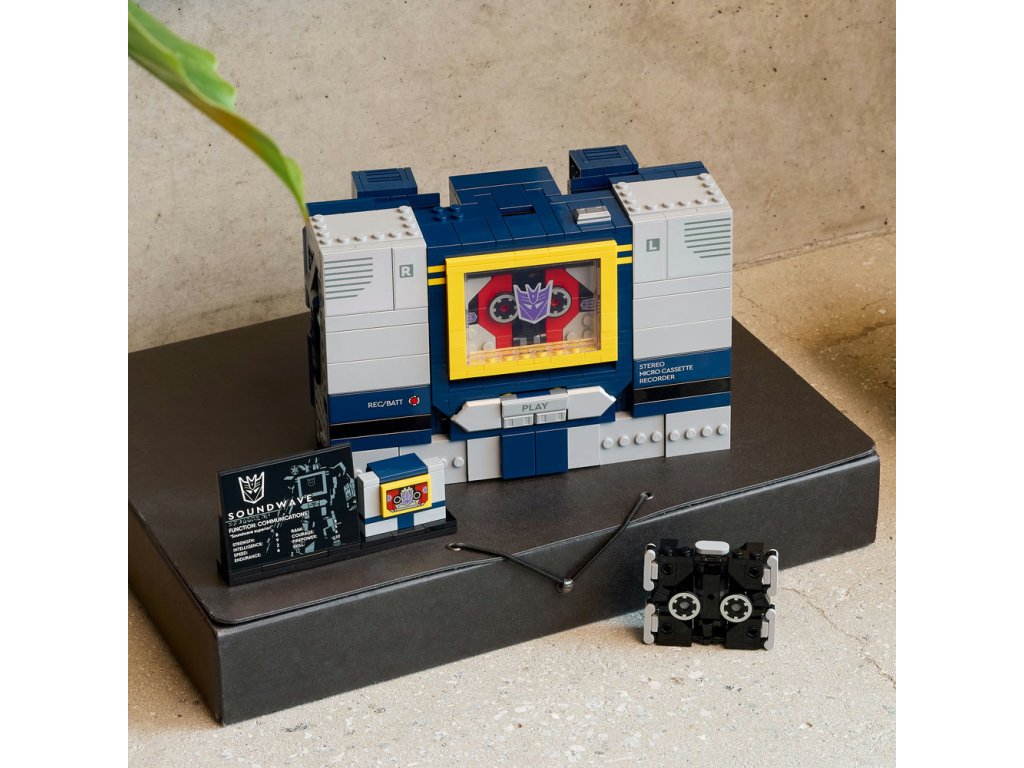 Stisknutím tlačítka přehrávání na Soundwaveovi aktivujte speciální nahrávky a zvukové efekty. Figurka má raketový podvozek, laserový blaster a šipky. Díky pohyblivým kloubům ji lze převést do podoby kazetového přehrávače a zpět. Figurky Ravage a Laserbeaka lze přeměnit na modely kazet, které se po jednom vejdou do Soundwavea v režimu kazetového přehrávače. Součástí stavebnice je také cedulka s informacemi o výkonu Soundwavea.