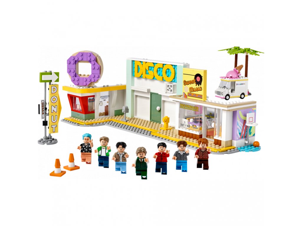 Tento model na stavění a hraní je úžasný dárek pro fanoušky BTS a je plný autentických detailů, jako jsou alba BTS v obchodě s hudebními deskami, sestavitelné palmy a basketbalový koš před malovanou zdí. Návod k sestavení tohoto zábavného modelu najdete v krabici a v aplikaci LEGO Builder, která vás provede každým krokem.