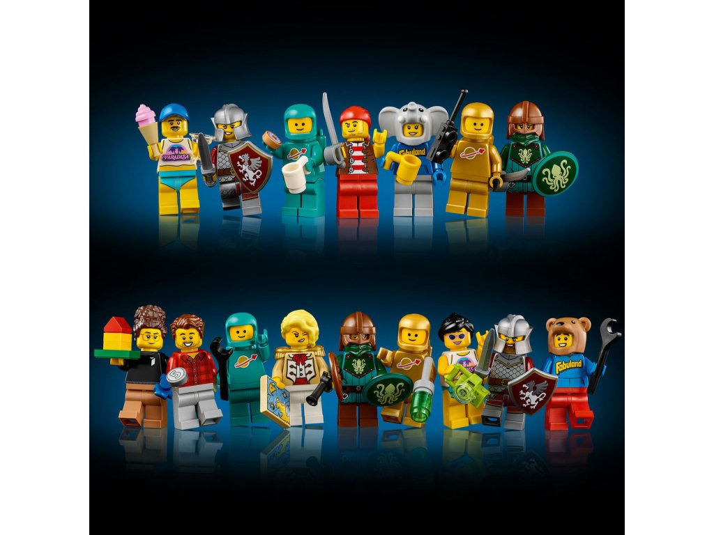 V každé kapsli najdete dílky potřebné k sestavení sběratelské minifigurky LEGO, včetně 4 vybraných v anketě fanoušků LEGO Ideas. Součástí jsou minifigurky vzdávající hold klasickým řadám LEGO, jako je Castle, Paradisa a Fabuland®, a navíc minifigurky vesmírných průzkumníků, návrháře z řad fanoušků, který je autorem této stavebnice, a dalších.
