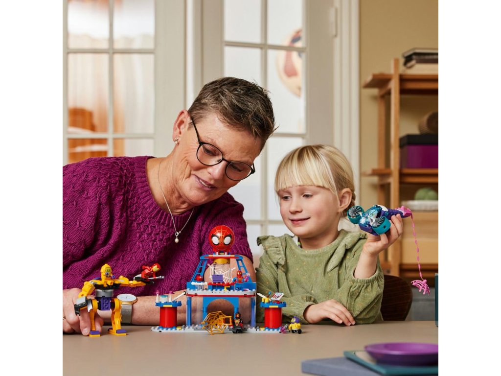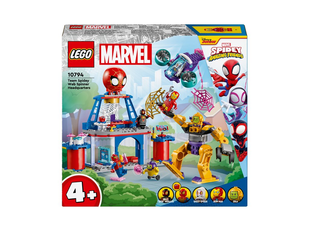 Fanoušci televizního seriálu Spidey a jeho úžasní přátelé od Disney+ poznají své oblíbené postavy, vozidla a další prvky této stavebnice. LEGO® 4+ (10794) Pavoučí základna Spideyho týmu je speciálně navržena tak, aby vyhovovala schopnostem a zájmům dětí od 4 let. Součástí této stavebnice LEGO Marvel je minifigurka Spideyho, Iron Mana, Milese „Spin“ Moralese, Ghost-Spider a Zoly. Nechybí Zolův velký robotický oblek s pohyblivýma nohama a drápy, kterými dokáže uchopit minifigurku, kluzák s rotory a otáčivými vrtulemi, otevírací kokpit a velká růžová pavučina. V hlavní budově najdete inspirativní prvky, které odhalují zájmy superhrdinů: věda, hudba a malování. Stavebnice 4+ představují skvělý způsob, jak mohou dospělí se svými potomky sdílet zábavu při stavění. Nechybí začátečnická kostka a intuitivní návod v podobě zábavného obrázkového příběhu, se kterým se děti hravě pustí do stavění.