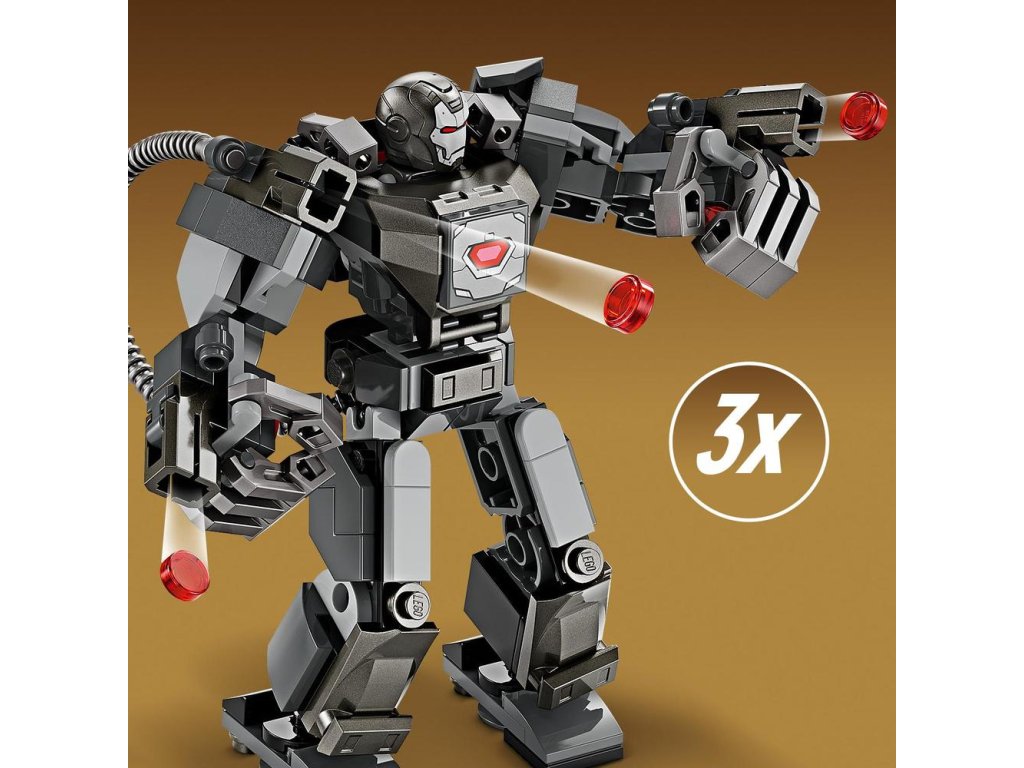 Otevřete hrudník robotického brnění a odhalte kokpit pro minifigurku pilota War Machine. Brnění se pyšní 3 vystřelovači – 1 na rameni a 2 na pažích – a úložným boxem s municí navíc. Figurka ze světa Marvel má pohyblivé ruce, nohy a ruce, takže na fanoušky War Machine a bojovníků v robotických brněních čeká nekonečná bitevní akce. Sestavitelnou stavebnici lze kombinovat s dalšími sadami LEGO Marvel s robotickými brněními (prodávají se samostatně). Pro ještě více digitální zábavy je zde zábavná a intuitivní aplikace LEGO Builder, kde mohou stavitelé přibližovat a otáčet modely ve 3D a sledovat postup.